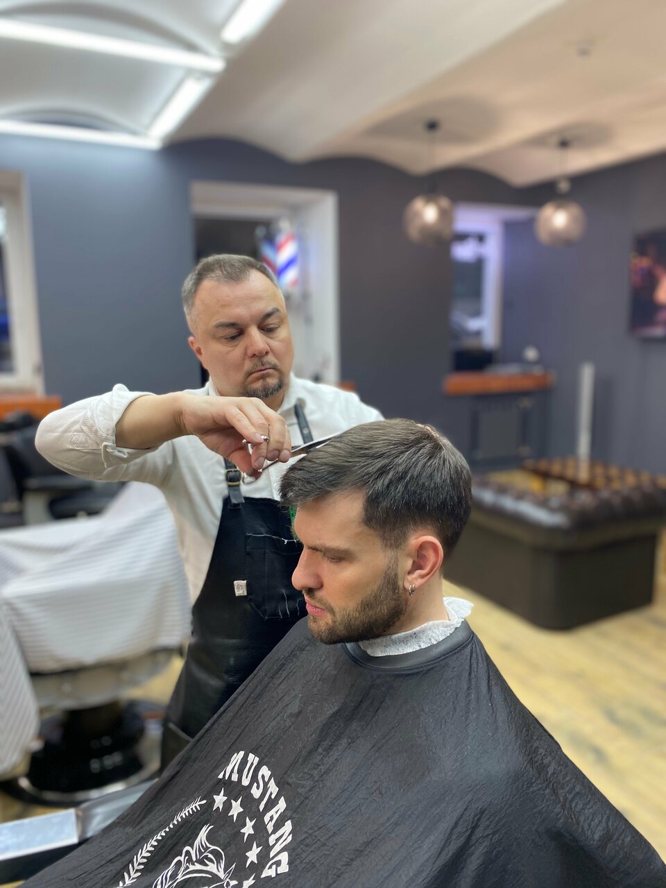 Отличный барбершоп. Мастера высокого уровня, отличное обслуживание. Уютная атмосфера и играет хорошая музыка. Лучшее место, чтобы придти за крутой стрижкой!)