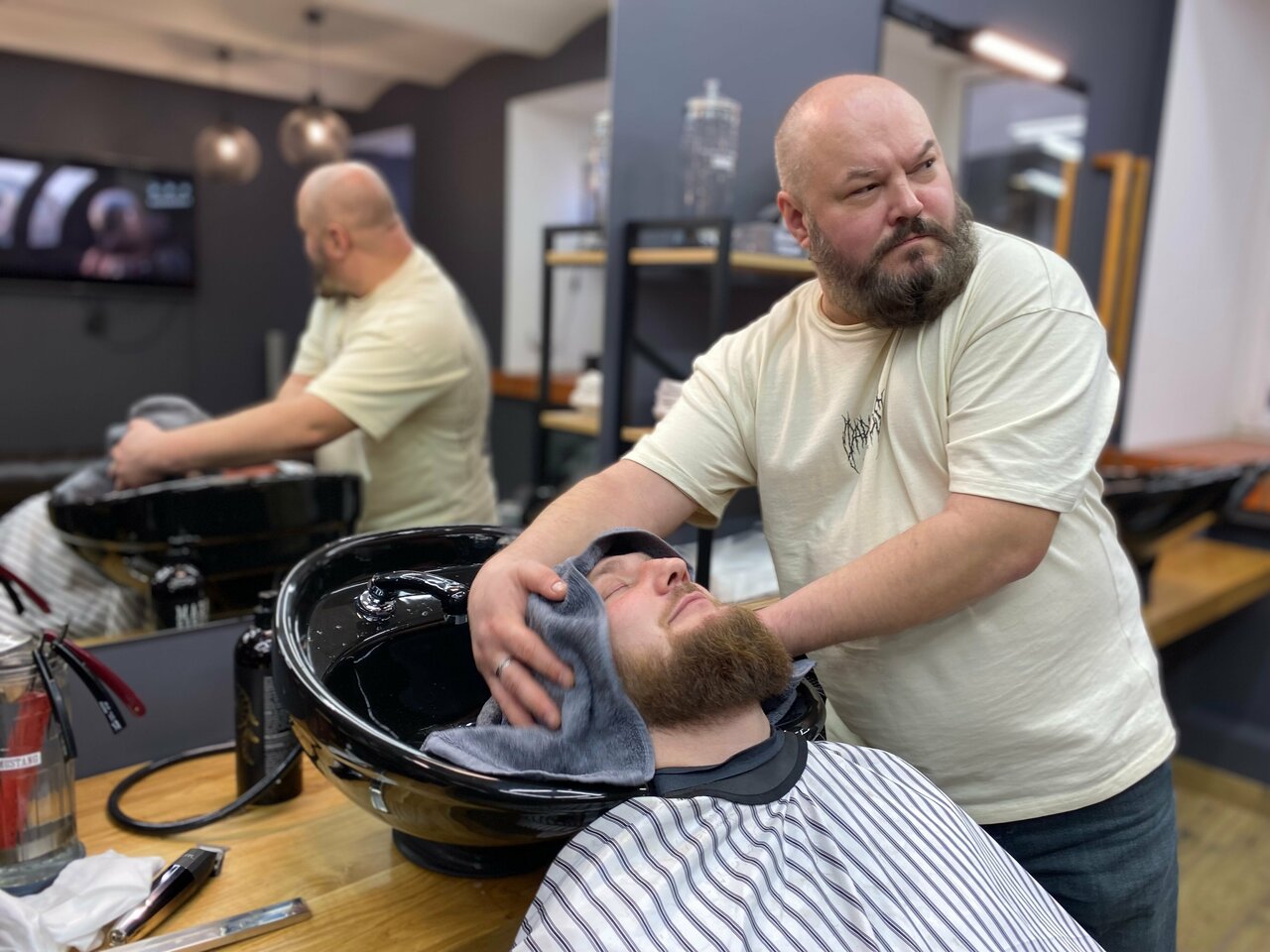 Очень приятная обстановка. Мастер Александр — профессионал, и борода и стрижка удались!