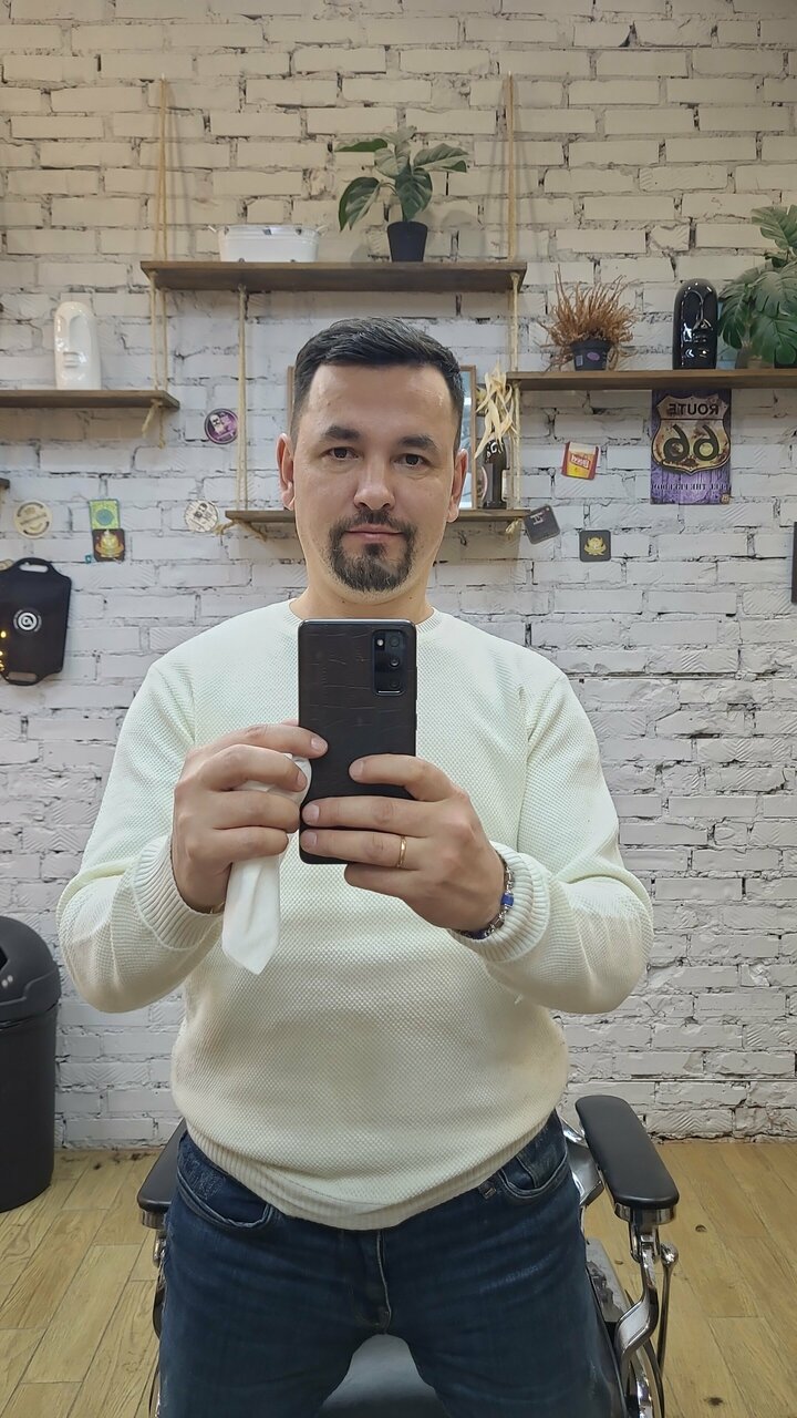 Отличное место! Стригут недешево, но это стоит того. Мастер Рамиль шарит 🙂 понимает стиль и красоту. Хочу стать завсегдатаем этого места. На фото: стало/было