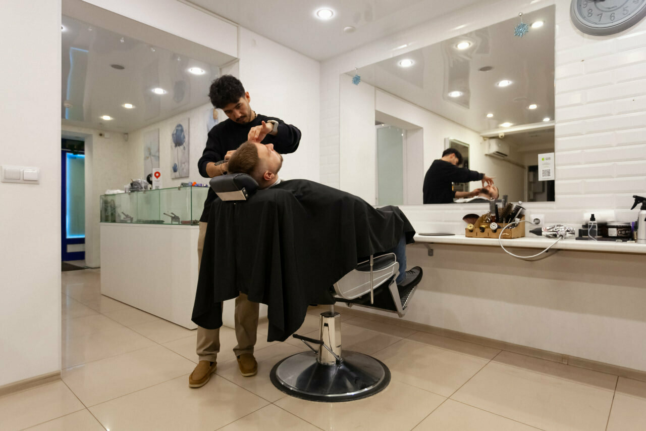 Понравилось. Записался по WhatsApp. Встретили приветливо. Салон небольшой, но всё по современным стандартам. У Азиза лёгкая и уверенная рука. Показал ему фото — все сделал как я хотел без лишних вопросов.