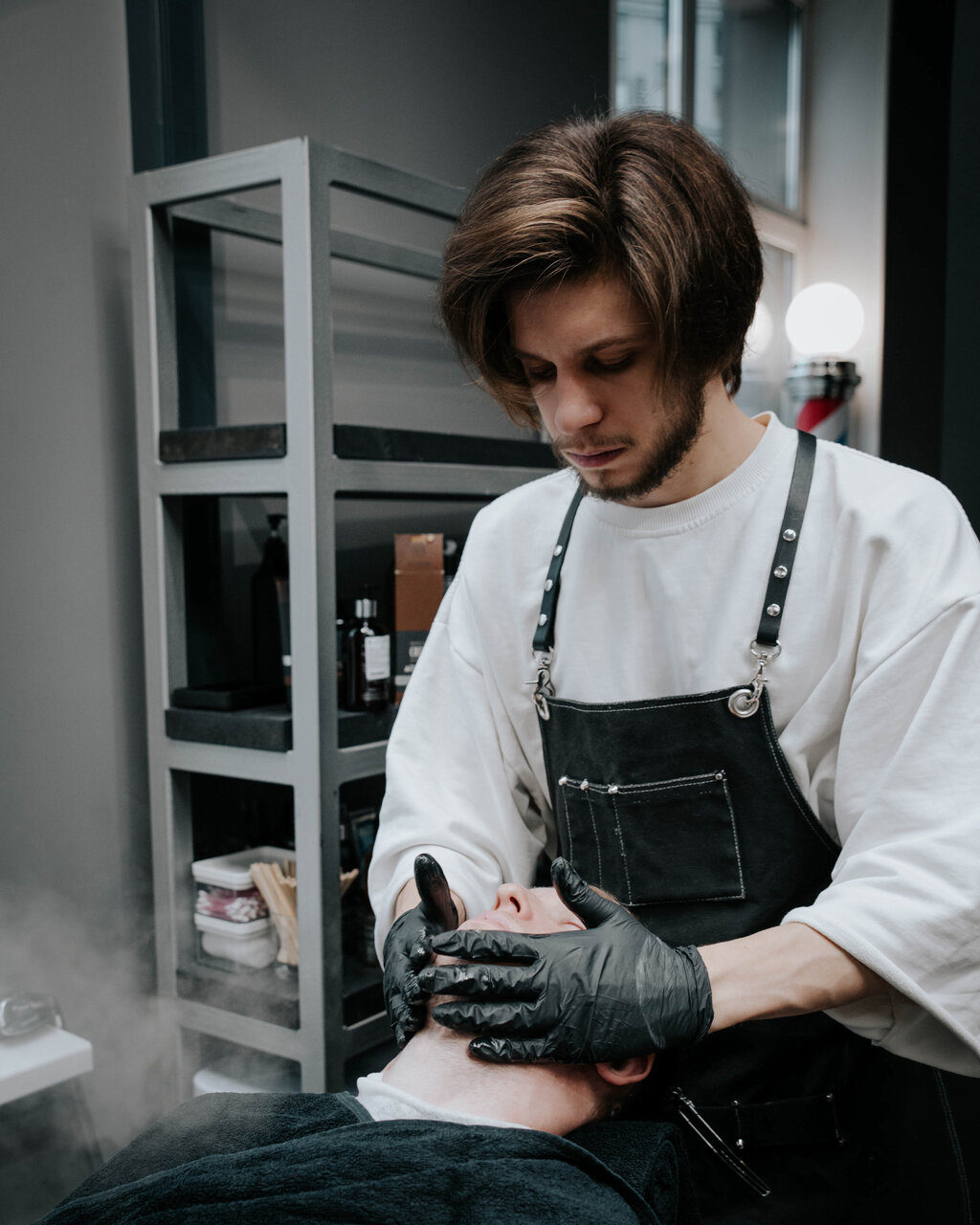 Создание формы бороды и четких контуров с использованием ножниц, машинок, шейвера и бритвы-шаветт с одноразовым лезвием. Услуга может включать в себя распаривание с использованием эфирных масел, легкий массаж лица, охлаждающий компресс.