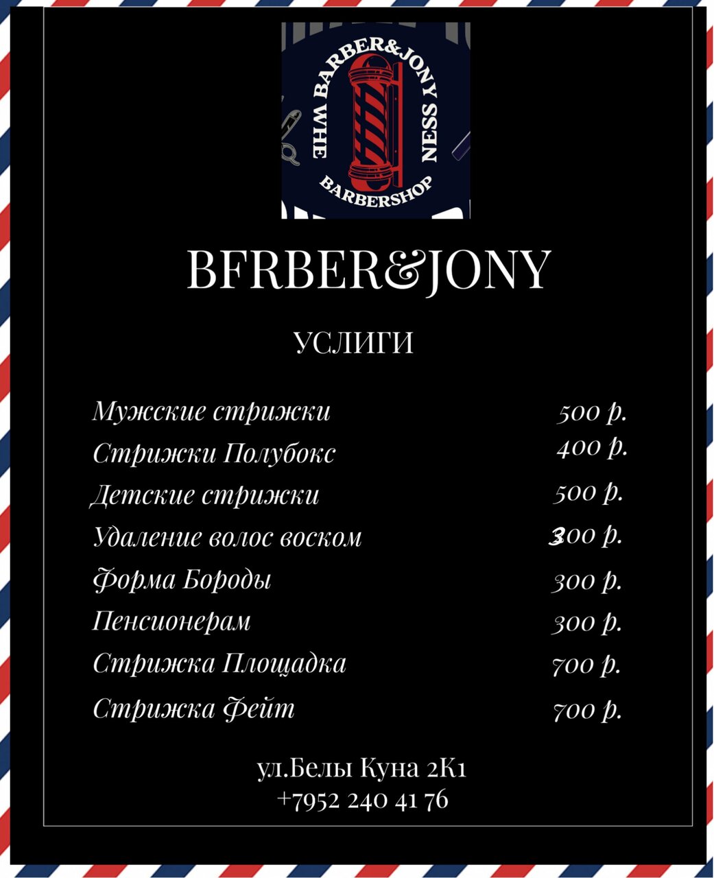 Скачать прайс-лист Barber&Jony на ноябрь 2025 годаАдрес барбершопа Barber&Jony на карте