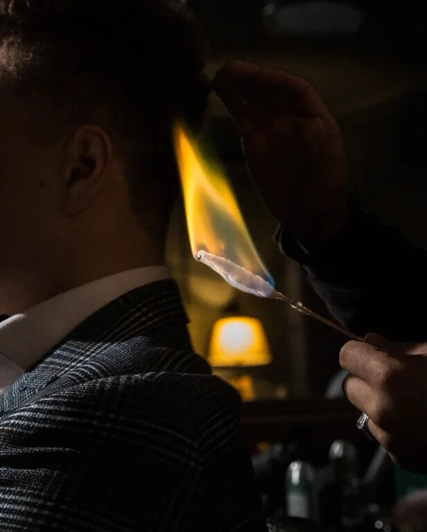 В мужскую стрижку входит: -консультация специалиста-мытьё головы-стрижка двумя насадками -укладка-опаливание ушей