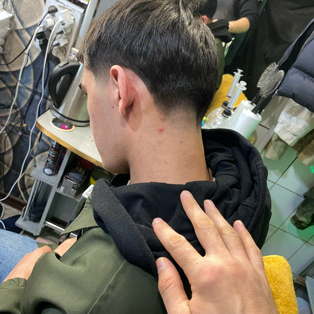 Я уже у него Стригусь 3 год рас месяц прихожу место супер И клеем удаляет волосы очень грамотно и чисто