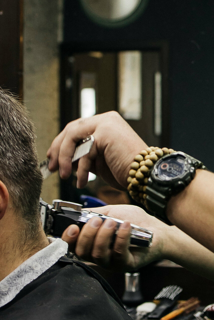 Мужская стрижка выполняется с помощью машинок, тримеров, шейвера, ножниц (прямых, филировочных) Перед стрижкой детально разбираются все нюансы с мастером.