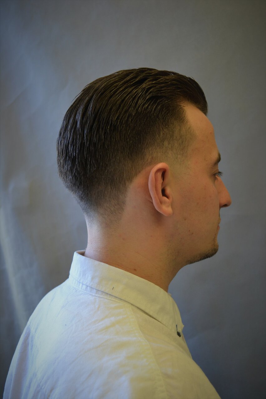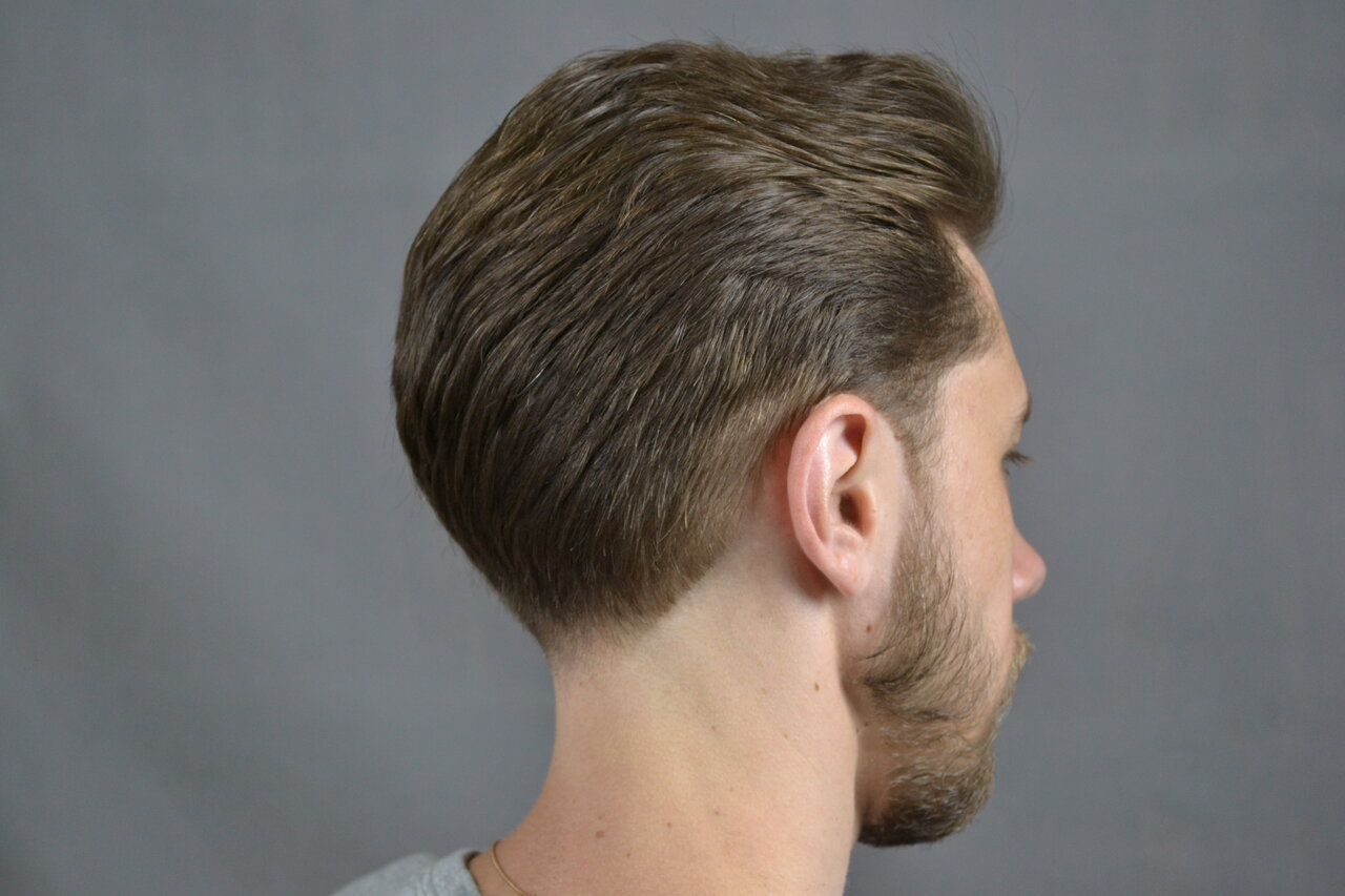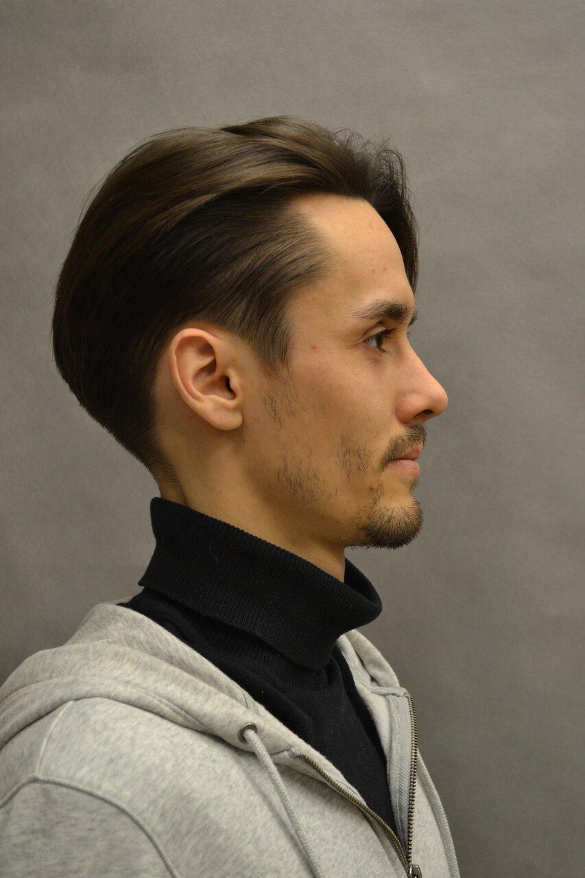 Классическая мужская стрижка на ножницах выполняется с помощью ножниц разной длины, филировочных ножниц, тримеров, машинки, если в нижнезатылочной зоне необходимо выполнить элемент Taper Fade, по желанию гостя. В некоторых стилях используются шаве...