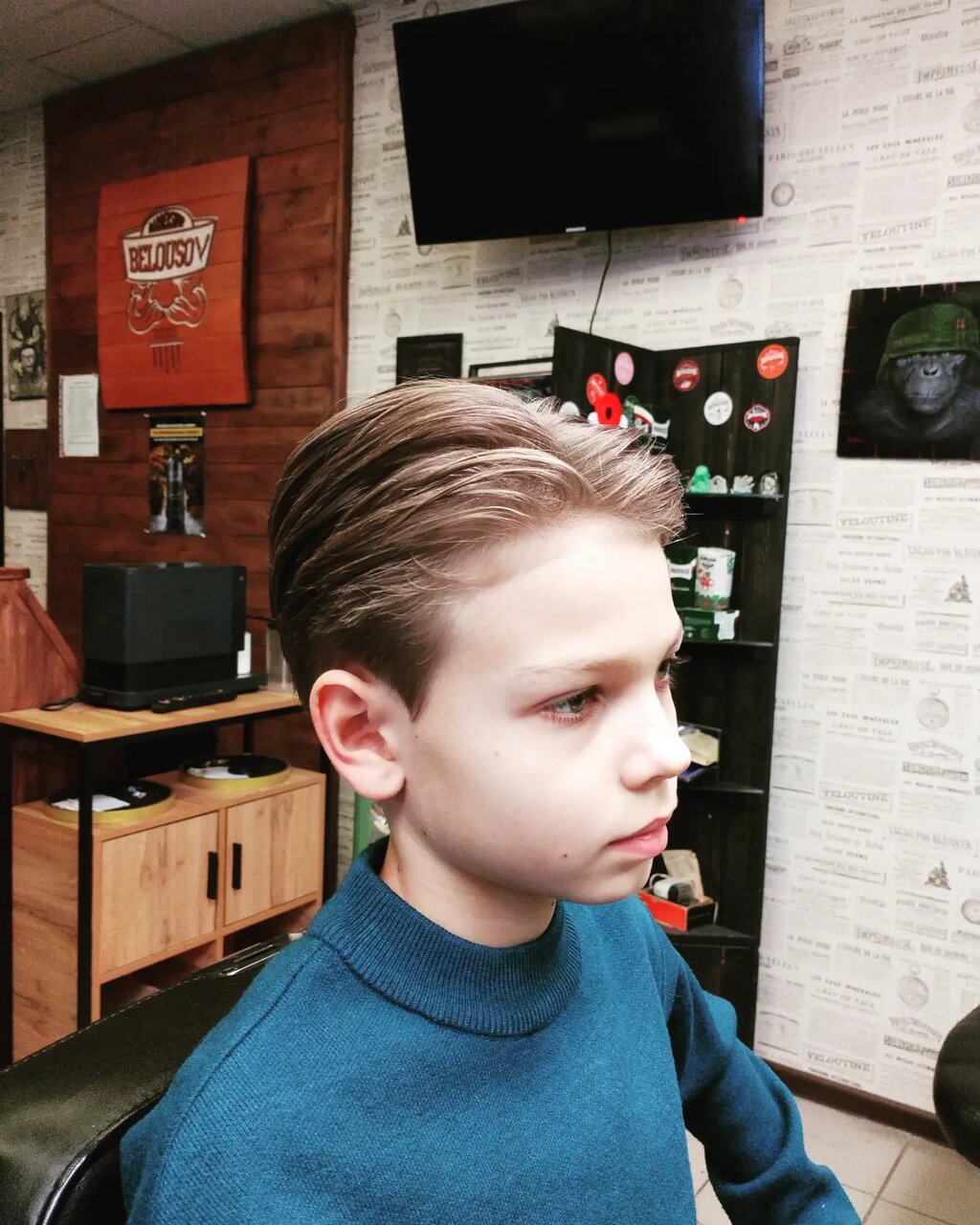 Детская стрижка. Возрастные ограничения с 6ти до 12ти лет. Лучше обговорить заранее с администратором заведения. Мытьё головы по договорённости с родителями, учитывайте холодное время и усидчивость юного джентльмена.