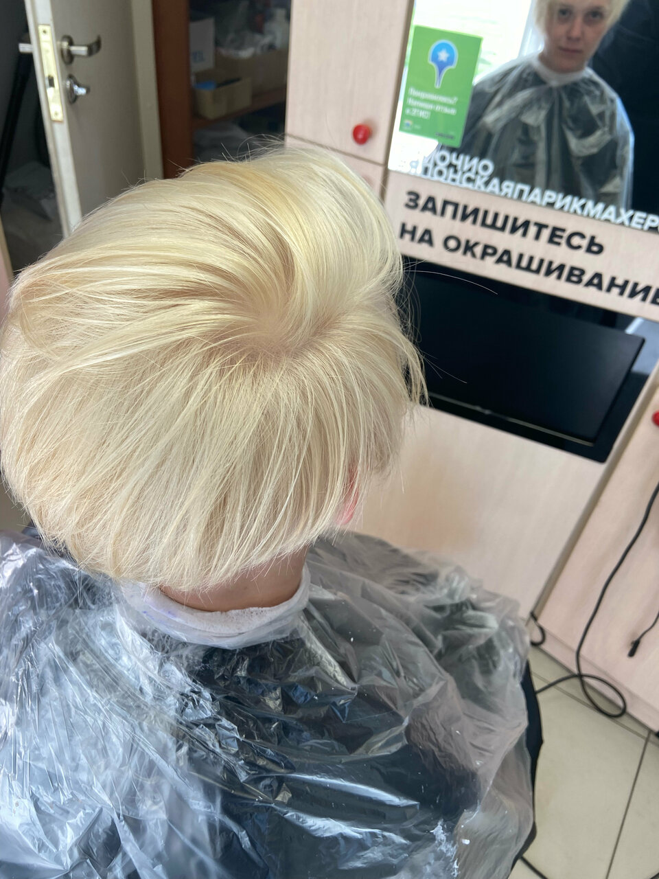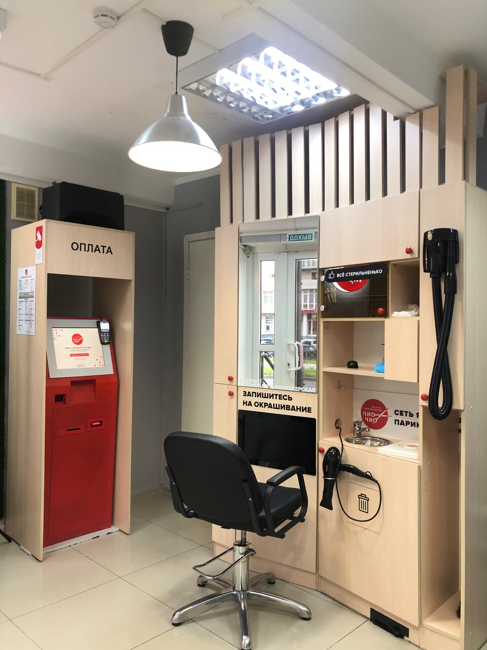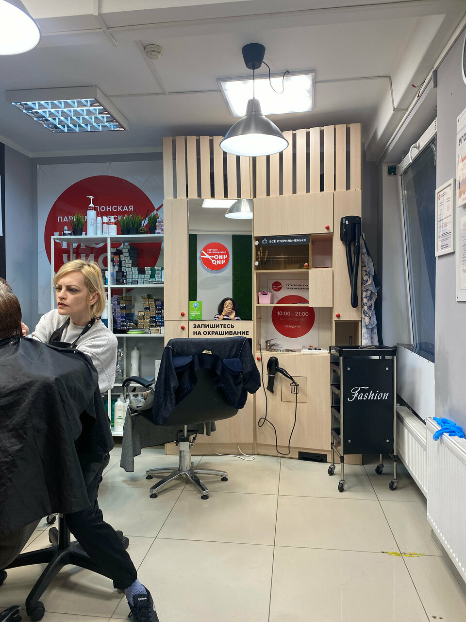Очень душно и грязно. Несмотря на запись, пришлось ждать, что меня и спасло. Посмотрела на работу мастера в процессе и результат стрижки предыдущего клиента-убежала, только пятки сверкали. Я так дома сына стригла, когда он маленький был.)). Мастер Алиса.