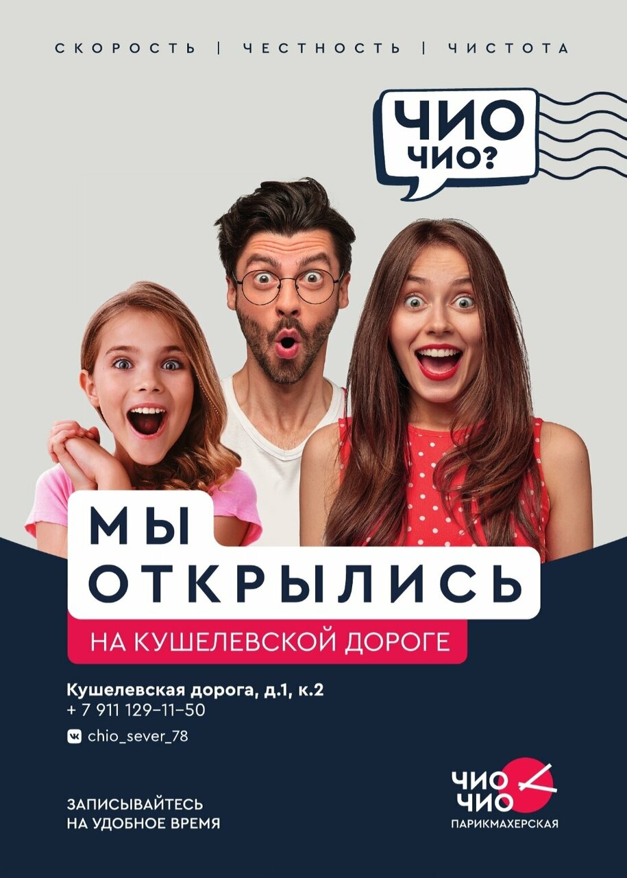 Салон находится по адресу: Кушелевская дорога, 1, корпус 2, и работает ежедневно с 10:00 до 21:00. Для записи и консультаций доступны телефоны: +7 (931) 178-06-88 и +7 (931) 982-25-30. Подробную информацию можно найти на сайте https://chio-chio.ru/.