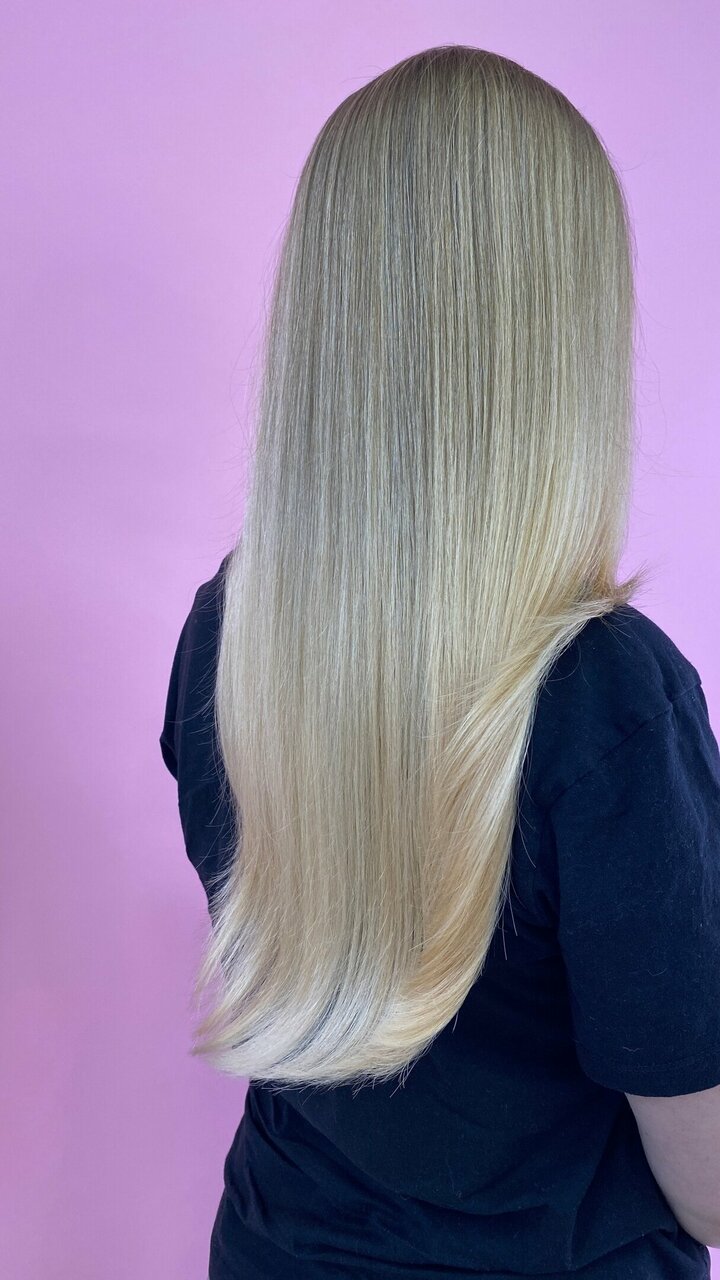 На длину волос не ниже плеч. В стоимость входит: Расходные материалы, консультация специалиста, укладка и укладочные средства, мытьё головы.
