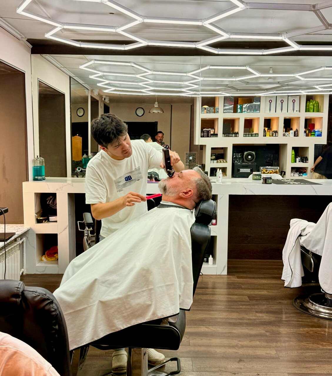 Барбер отличный профессионал, очень комфортно и быстро постригли, атмосфера помогает расслабиться
