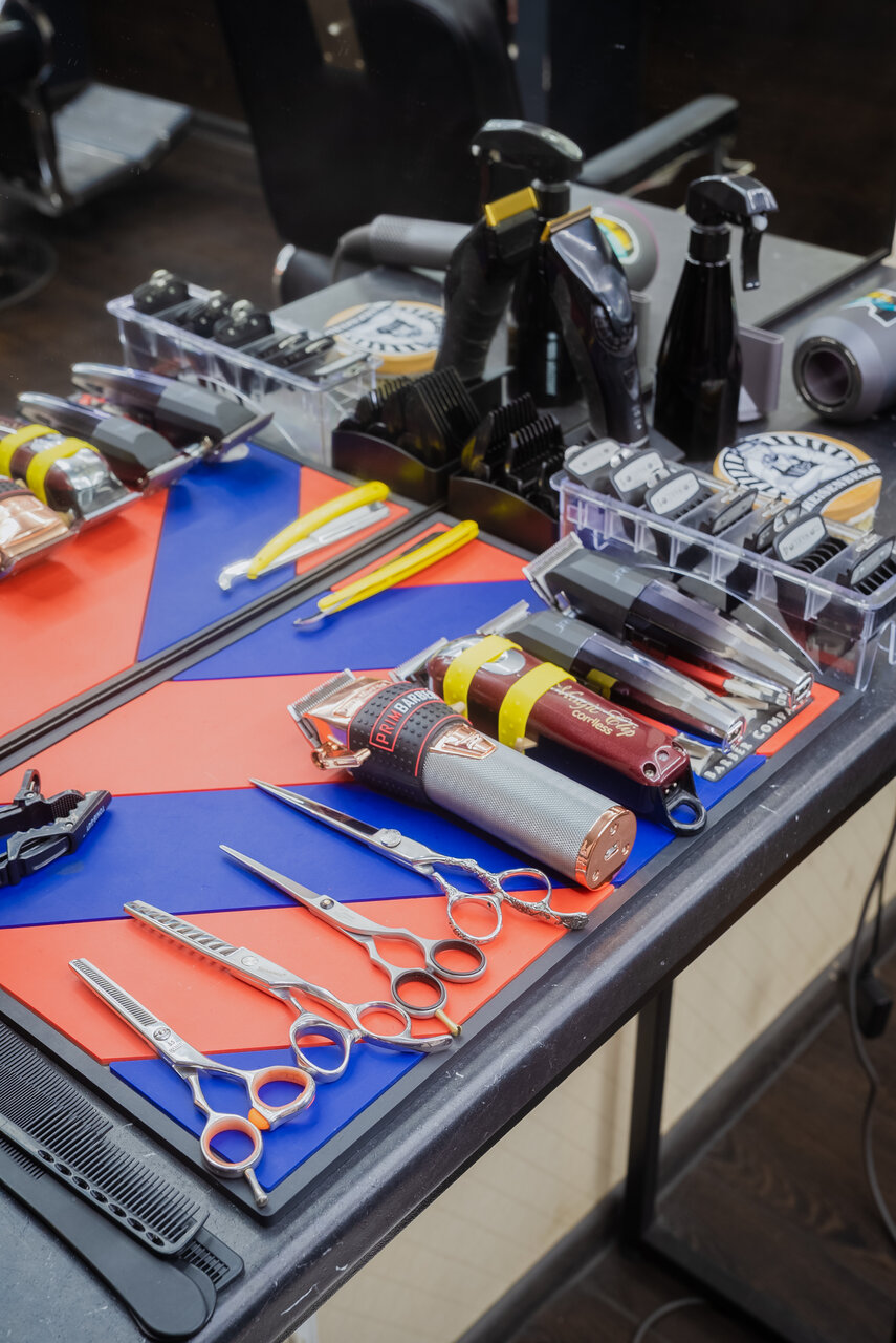 Стрижка выполняется с помощью машинки, ножниц и опасной бритвы. Оформление бороды включает в себя процедуру распаривания (на лицо наносится крем для распаривания, на лицо укладывается горячее полотенце) после чего выполняется оформление бороды с помо