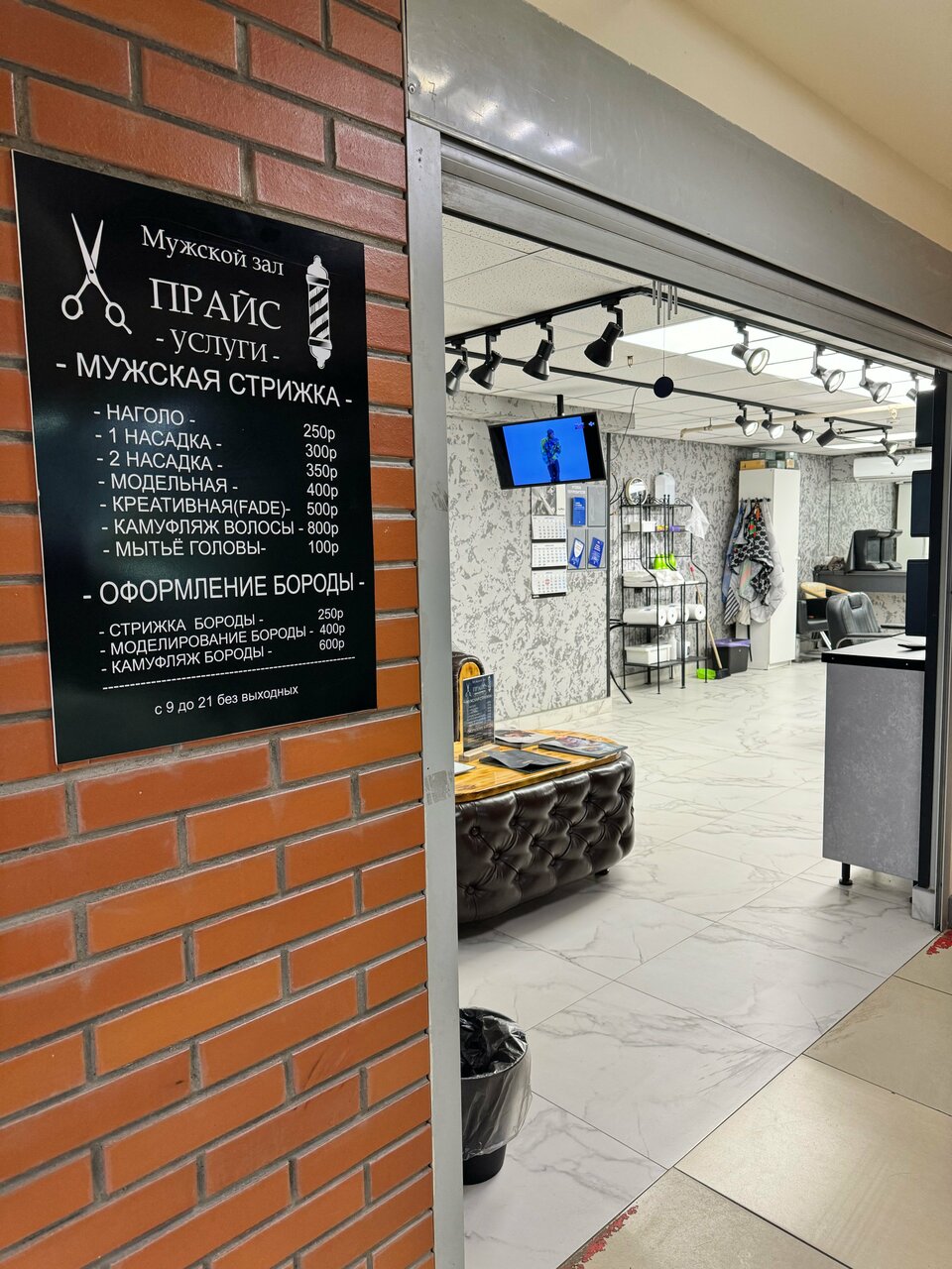 Стригусь не первый раз — цена и скорость на уровне. По прическе — полубокс — нареканий нет. Из минусов — нет безнальной оплаты… Связи этом ‘подвале’ практически нет… Записи нет. Из плюсов — недорого, быстро и персонал нормальный.