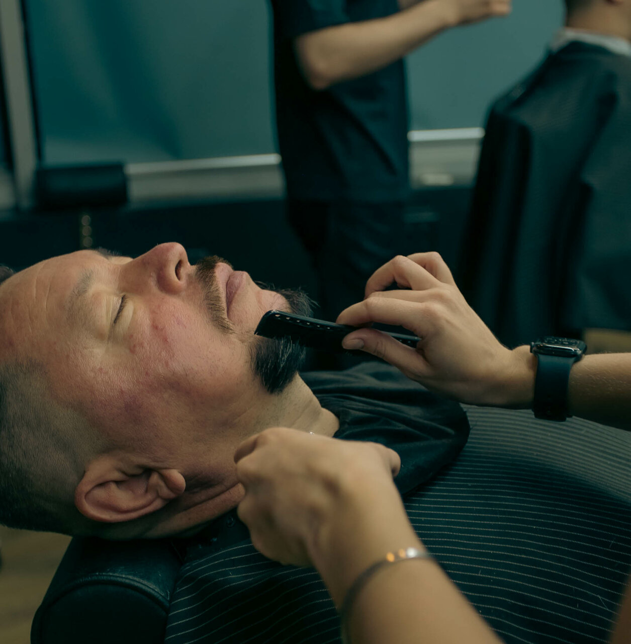 Бритье опасной бритвой (королевское бритье/опасное бритье) — уникальная процедура, которая дарит мужчине не только идеально чистое и гладкое лицо, но и возможность расслабиться, отдохнуть, раскинувшись в удобном кресле мастера.