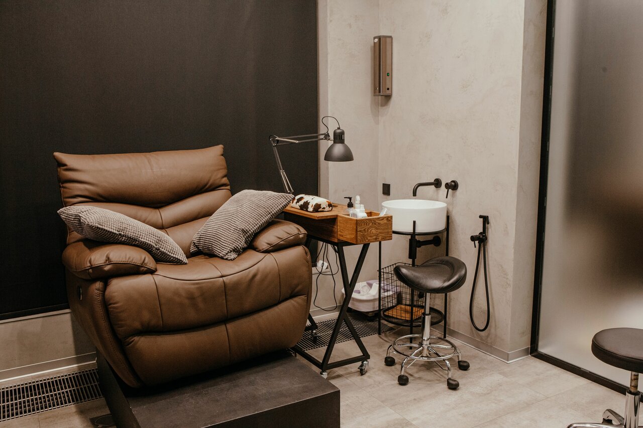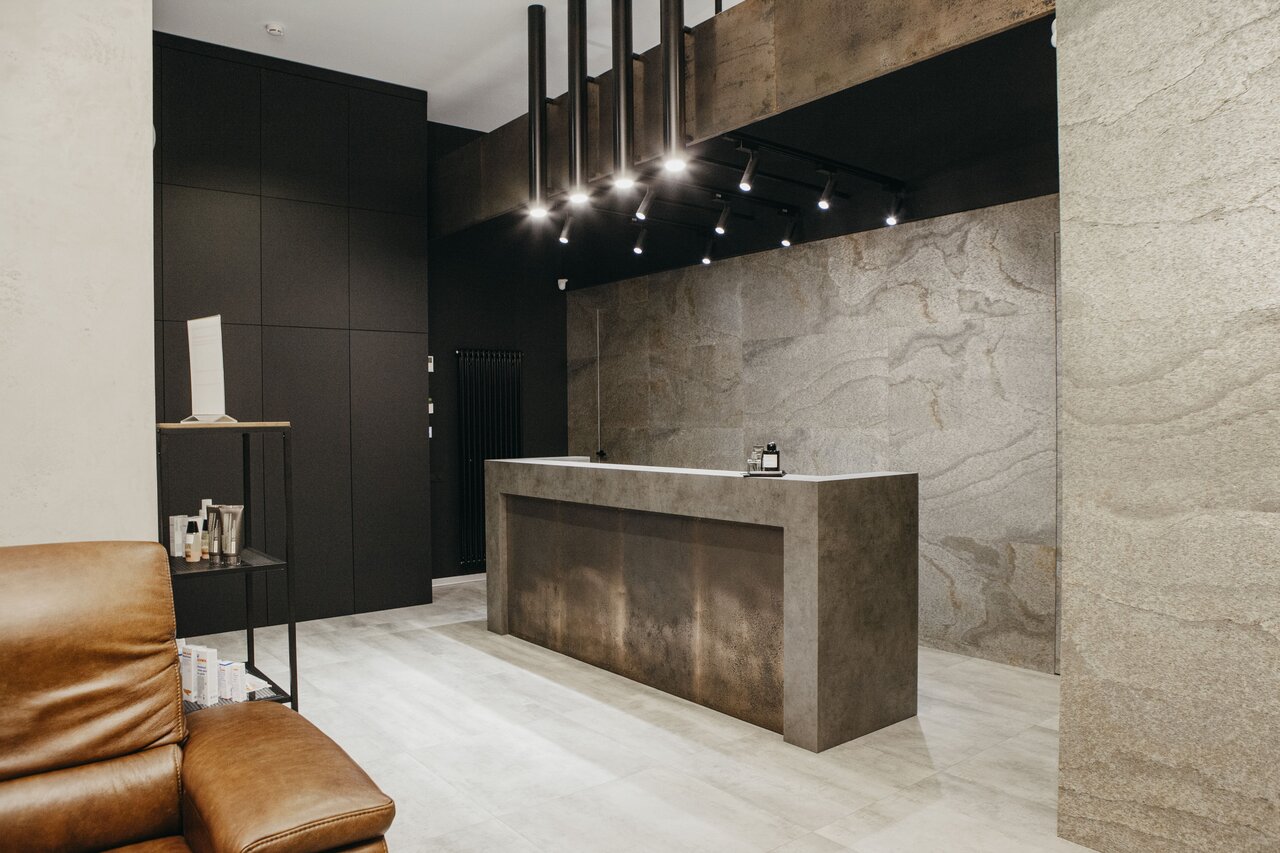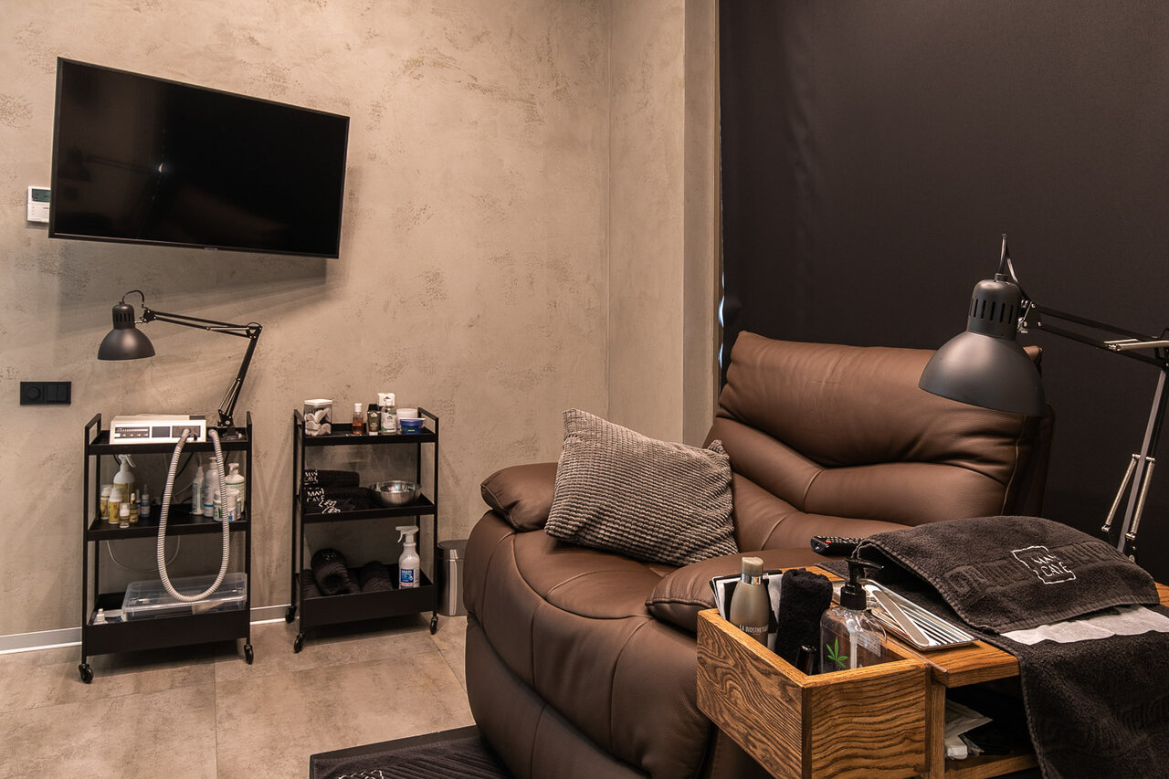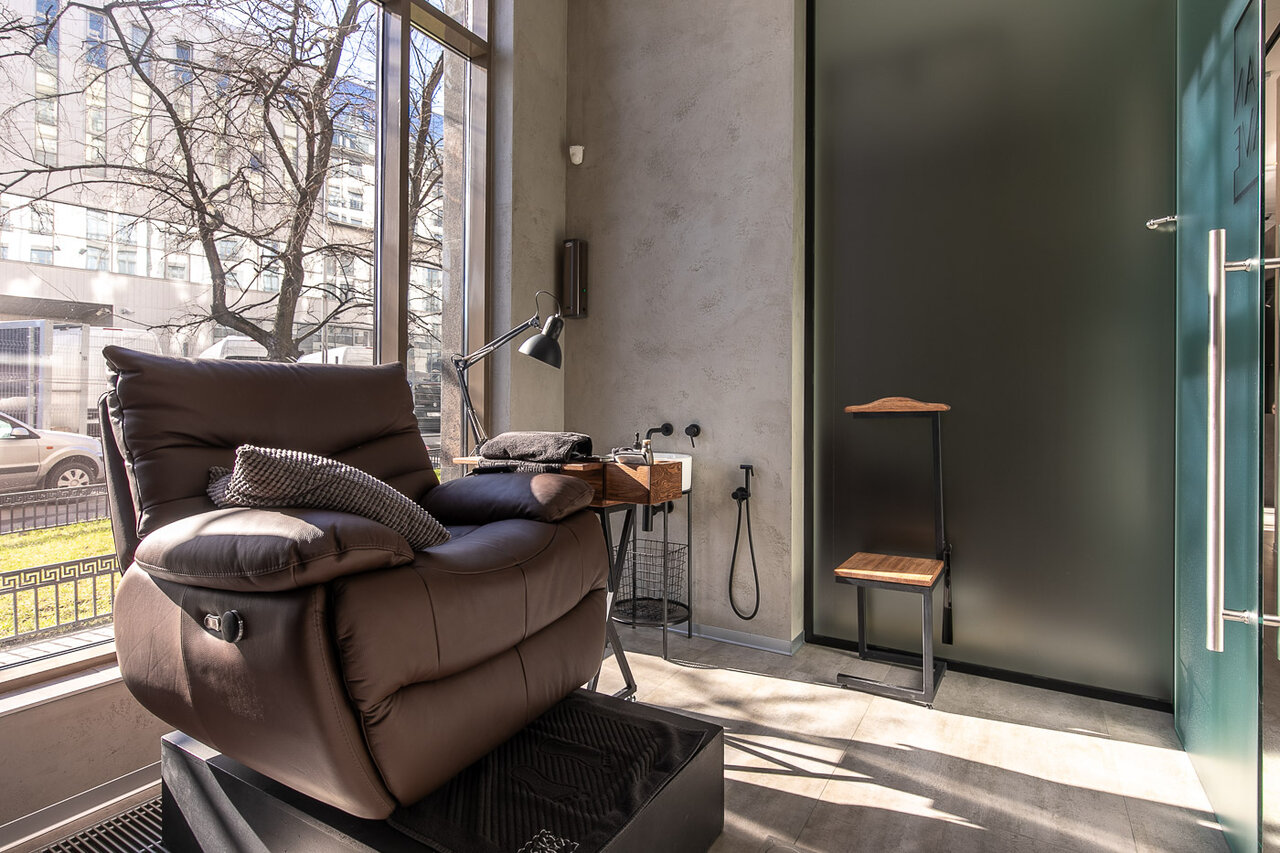 Уникальное место. Идеально для мужской стрижки, маникюра, педикюра, массажа. Супер сервис и минималистичный стильный интерьер: бетон, дерево, стекло, коричневая кожа