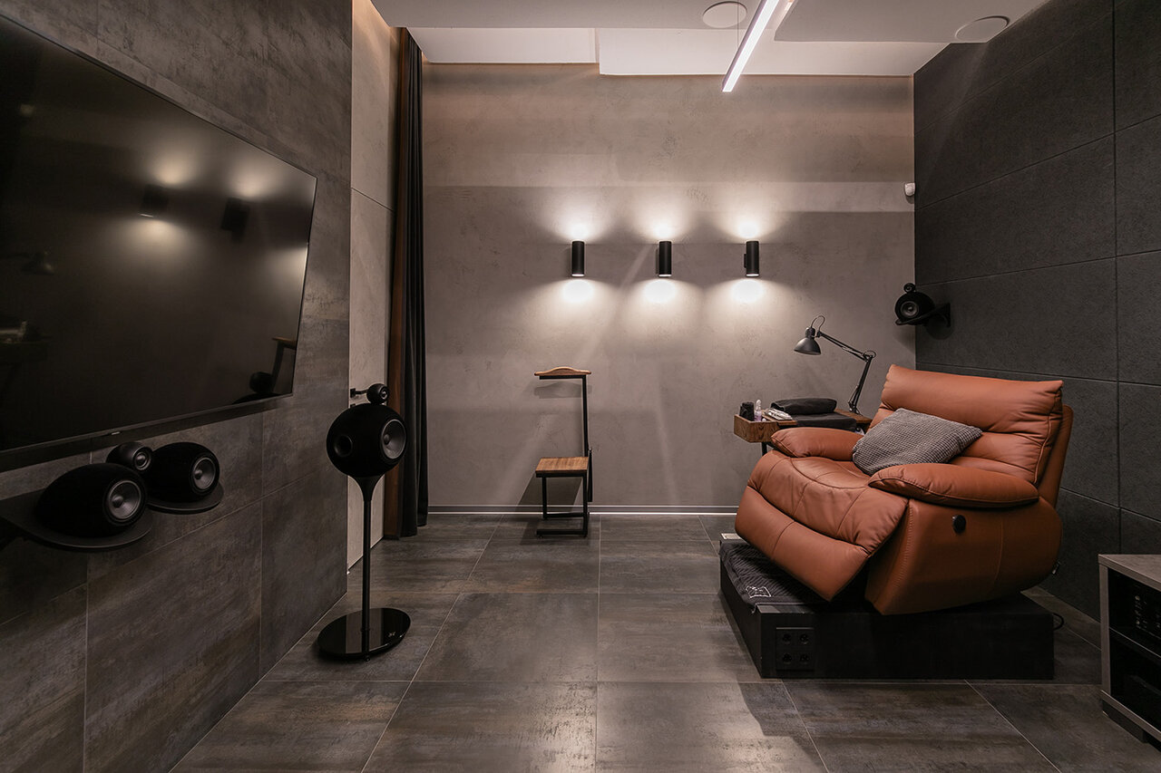 - Минималистичный и стильный интерьер (бетон, дерево, стекло, кожа)