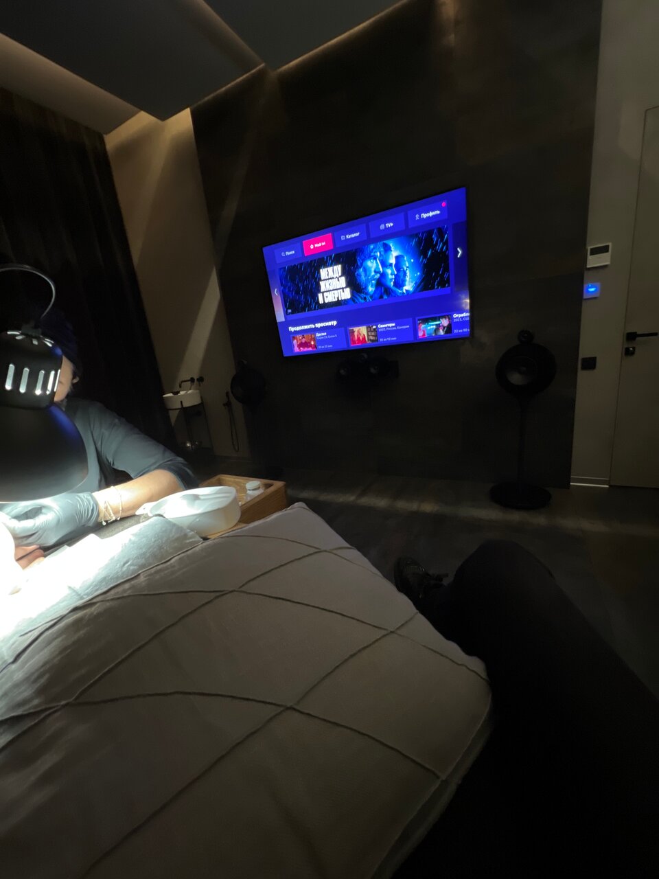 Сложно оценить ногтевой сервис — не разбираюсь в мастерах. Но отдельный для этих процедур комфортен. Хотя могли бы фильмы разнообразить или передачи, а то выбор ограничен одним онлайн кинотеатром