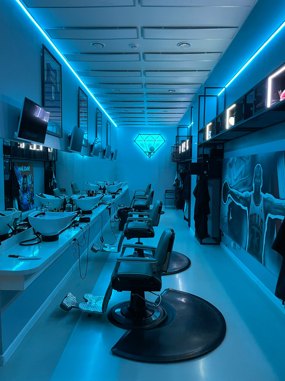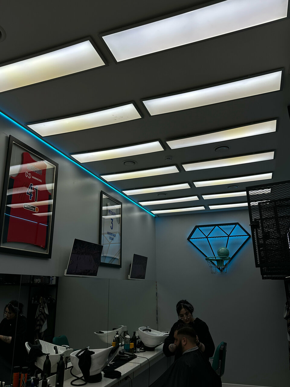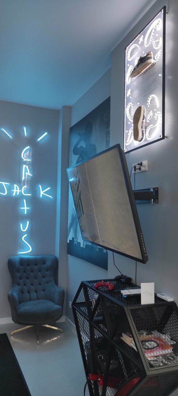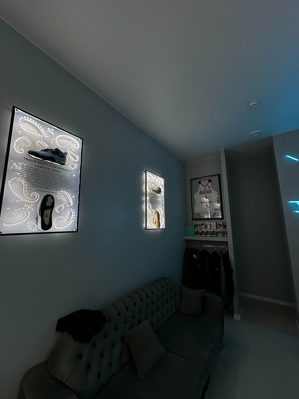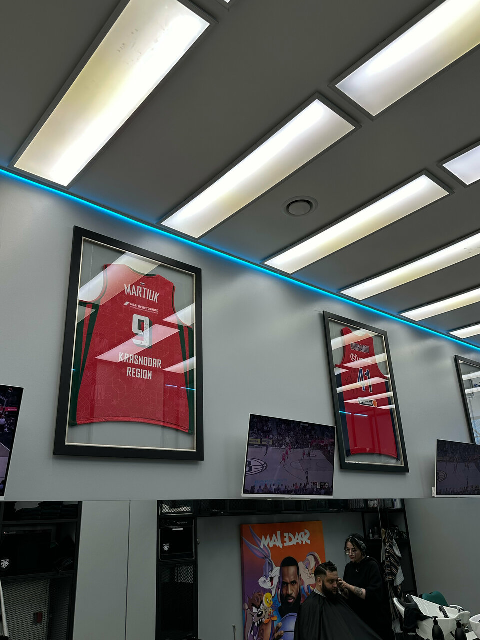 - Приятная атмосфера и стильный интерьер (баскетбольная тематика, картины, кроссовки)