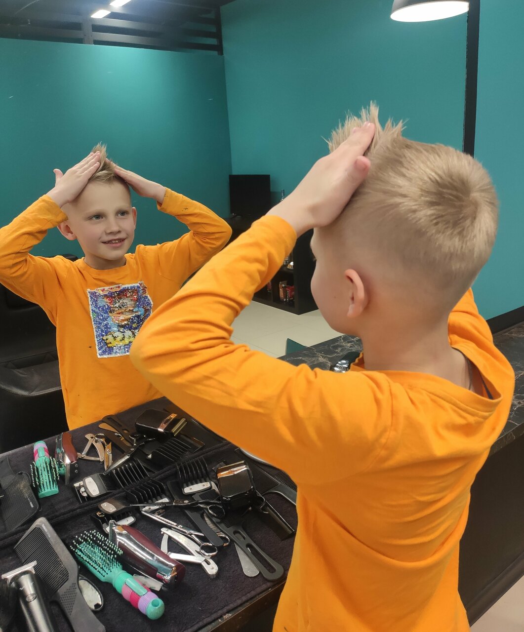 Очень классно подстригли ребёнка! Мне всегда говорили что у него волосы проволока и ровно не получится! Будем ходить, тем более мужская обстановка ребёнка удивила! И спасибо за игрушку
