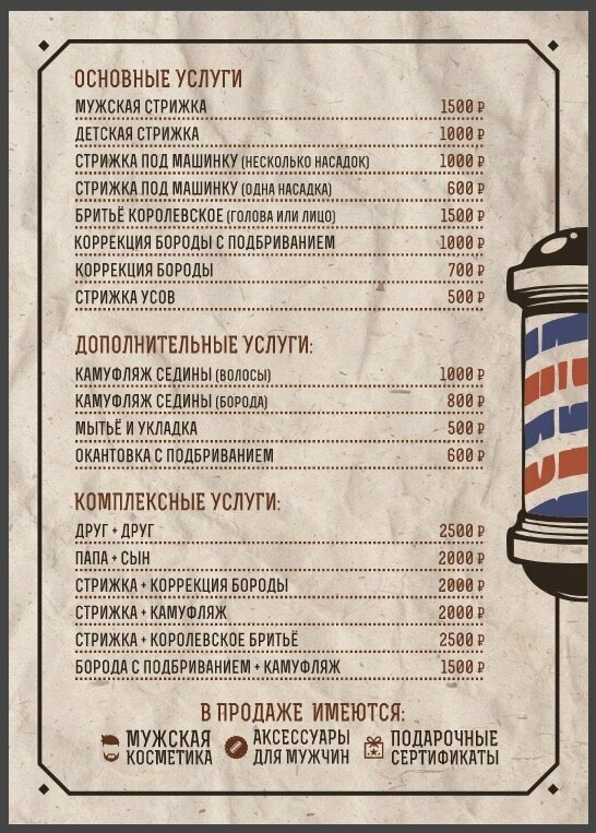- Стрижка мужская 1500₽