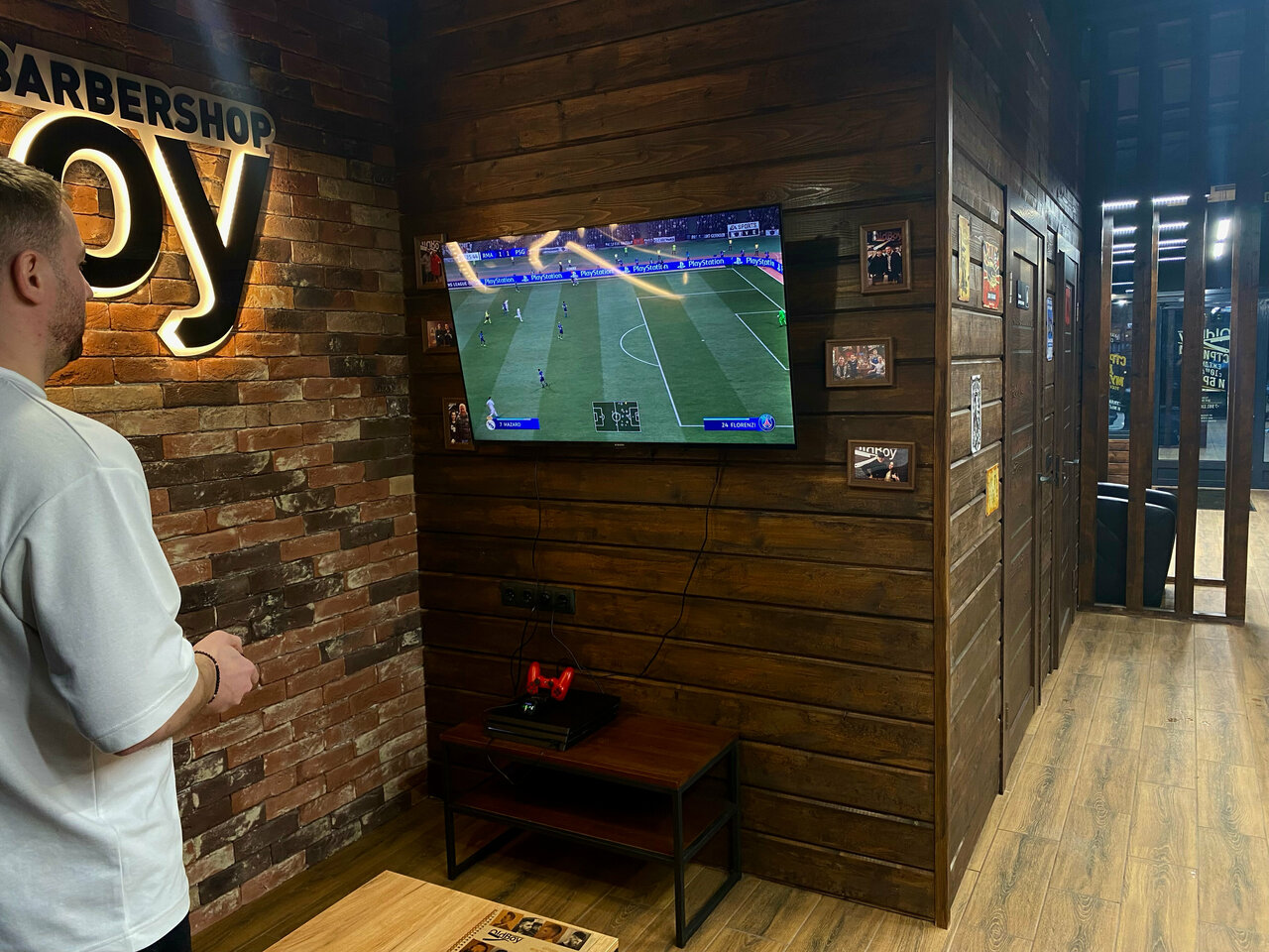 Очень комфортная атмосфера! Во время ожидания вам предложат чай, кофе, леденцы ( если вы с ребенком). Приятная музыка, продуманный интерьер . Если вы тут впервые , то предложат скидку отдельное спасибо мастеру Ивану, который добросовестно и профессионально подошел к своему делу!