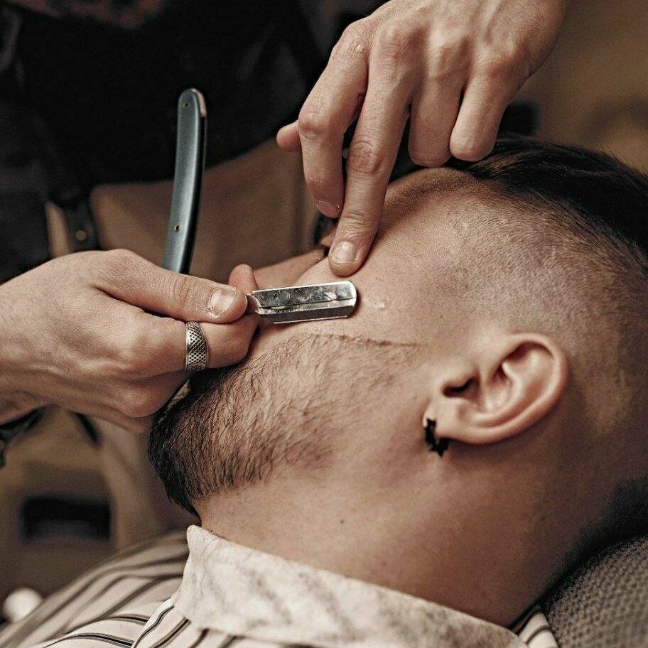 Опасное бритье головы или лица по специальной технологии. Что необходимо для того, чтобы бритье стало 'королевским'? Во-первых, это правильная опасная бритва и барбер, умеющий с ней обращаться. Наши опытные мастера прошли специальное обучение по ста