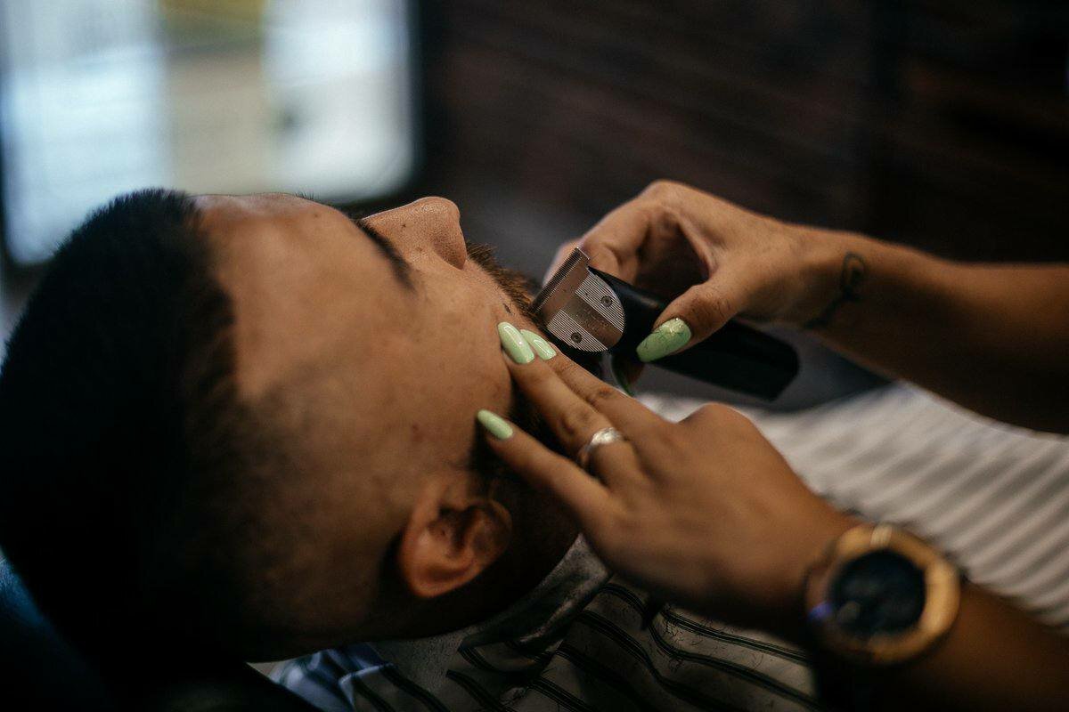 Придание формы триммером, также в услугу входит бритьё опасной бритвой со сменным лезвием.