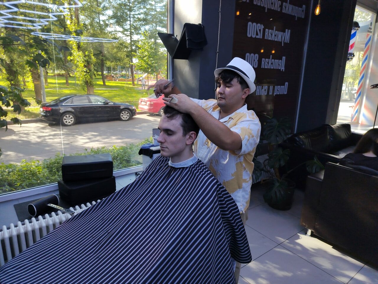 По ценам чуток меньше, чем у конкурентов-барбершопов, но дороже, чем в обычных парикмахерских. Советую мастера Акбара.