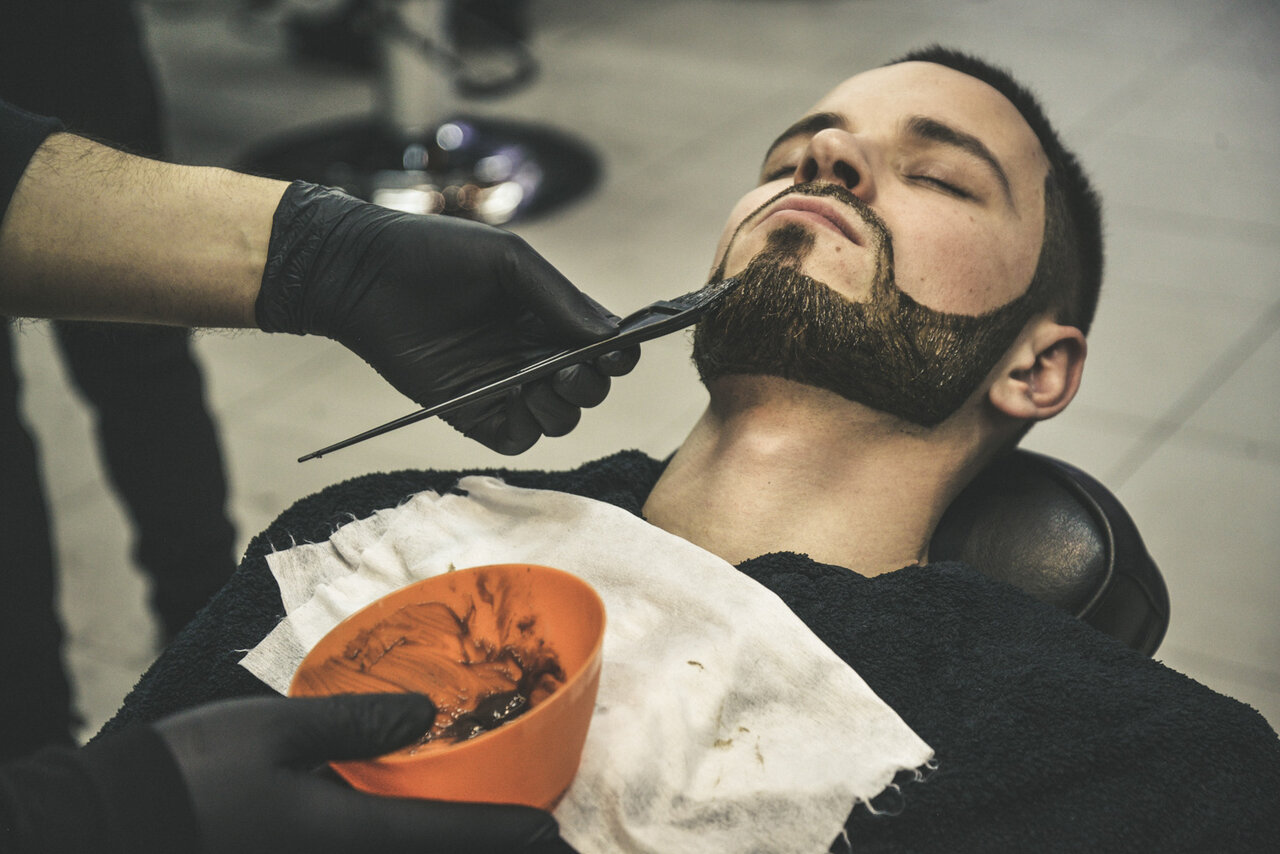 Стрижка и уход за лицом с использованием скраба и черной маски