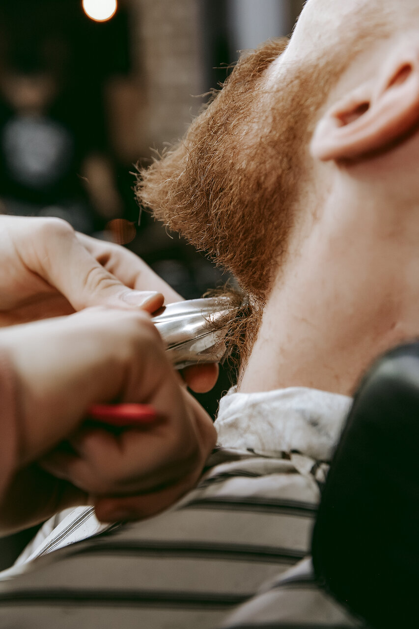 Моделирование бороды с бритьем - создание формы бороды при помощи ножниц и машинок. Создание четких контуров с использованием шаветта (бритва с одноразовым лезвием, аналог опасной бритвы). Услуга включает в себя распаривание с использованием эфирных