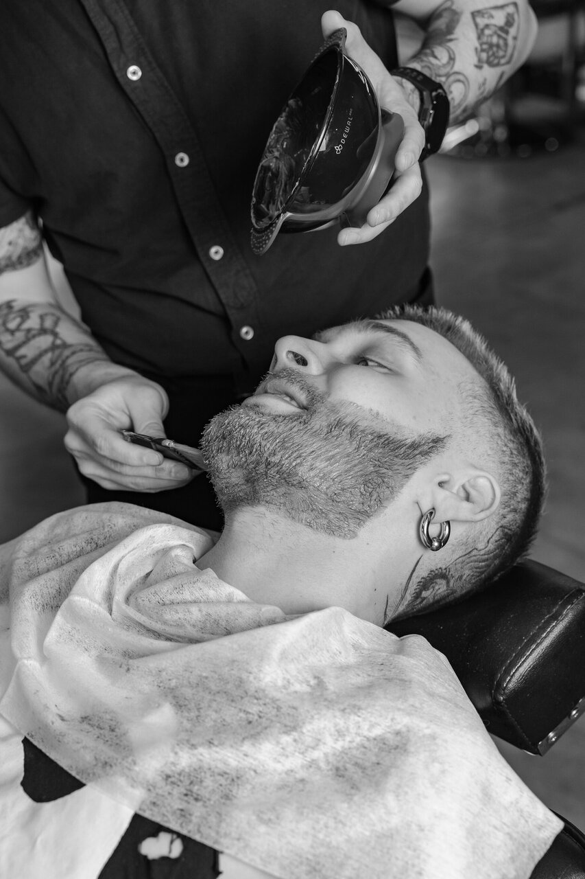 Моделирование бороды с бритьем, это создание формы бороды при помощи ножниц и машинок. Создание четких контуров с использованием шаветта (бритва с одноразовым лезвием, аналог опасной бритвы). Услуга включает в себ