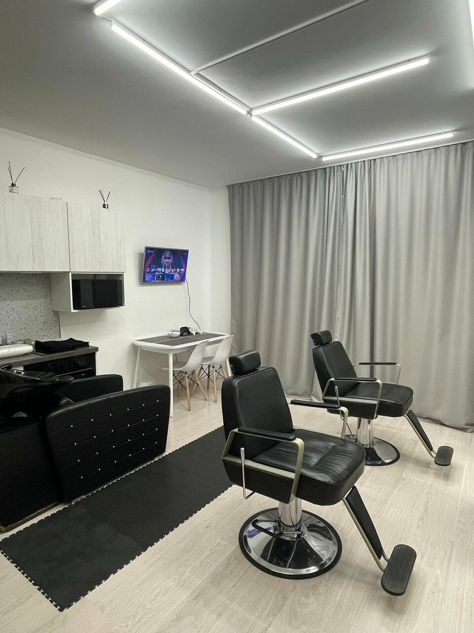 - Хорошая, стильная обстановка и музыка в барбершопе