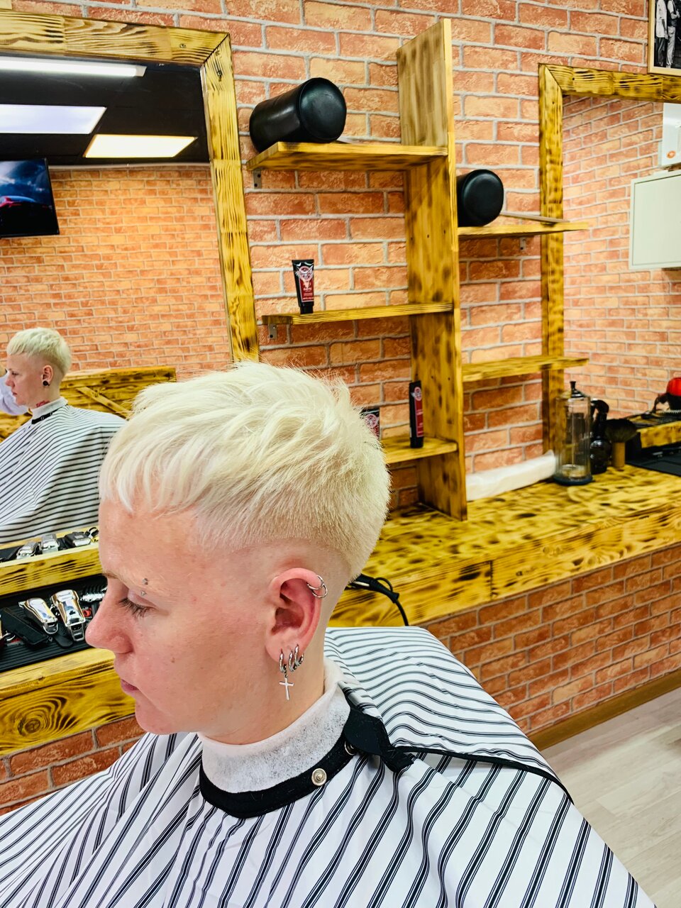 Подстригали и брили. Стрижка нормально, хотя трудно наверно сделать не нормально почти лысого мужчину машинкой с насадкой 3 мм. Везде. А вот бритье это катастрофа. Я жилетом горазда лучше бреюсь! Толи у парня бритвы тупые, толи просто не умеет. Вообщем вощил по десять раз по одному месту, а толку ноль! Зато раздражение второй день не проходит. Тряпка для распаривания ужас, вообщем подстричься машинкой за 400 это туда. Остальное нет. Брил худой такой парень