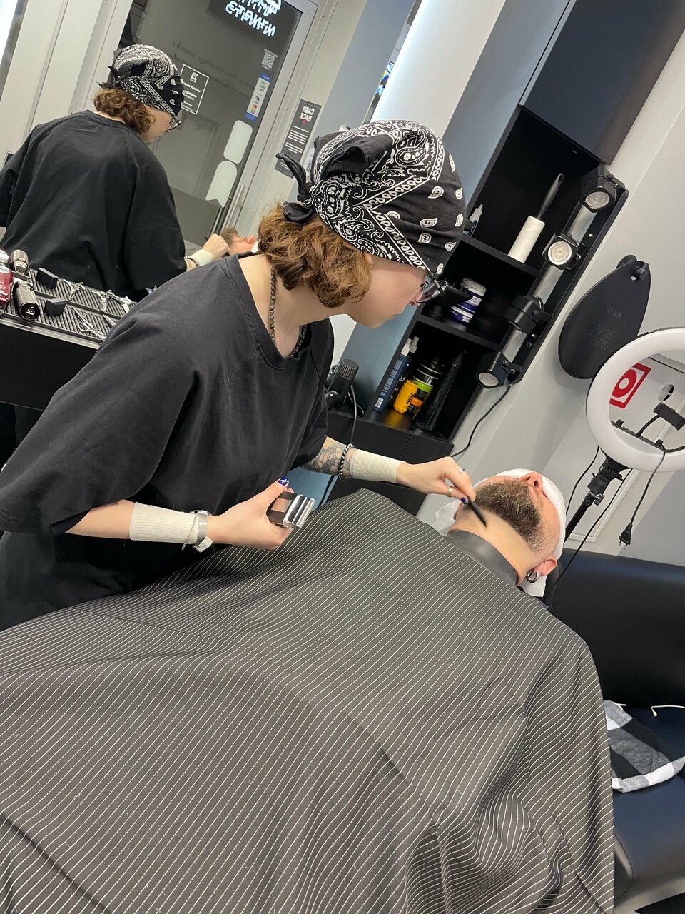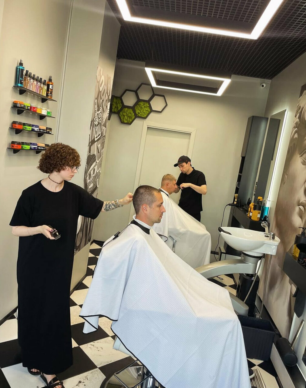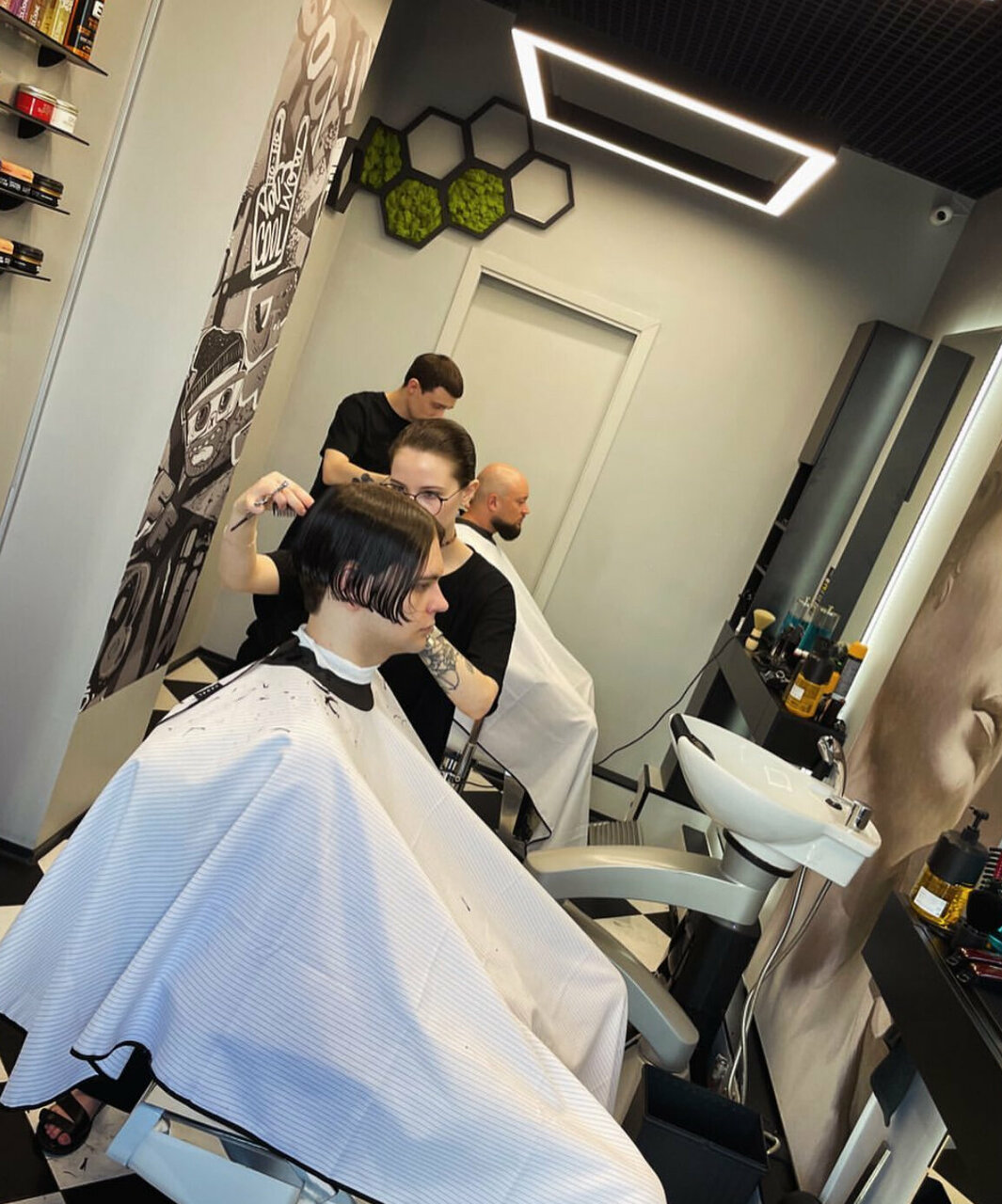 Стрижка — чётко по моим пожеланиям, плюс мастер дал советы по уходу за бородой. Никакой спешки, хотя клиентов было много. Интерьер стильный. но без пафоса — чувствуешь себя комфортно.