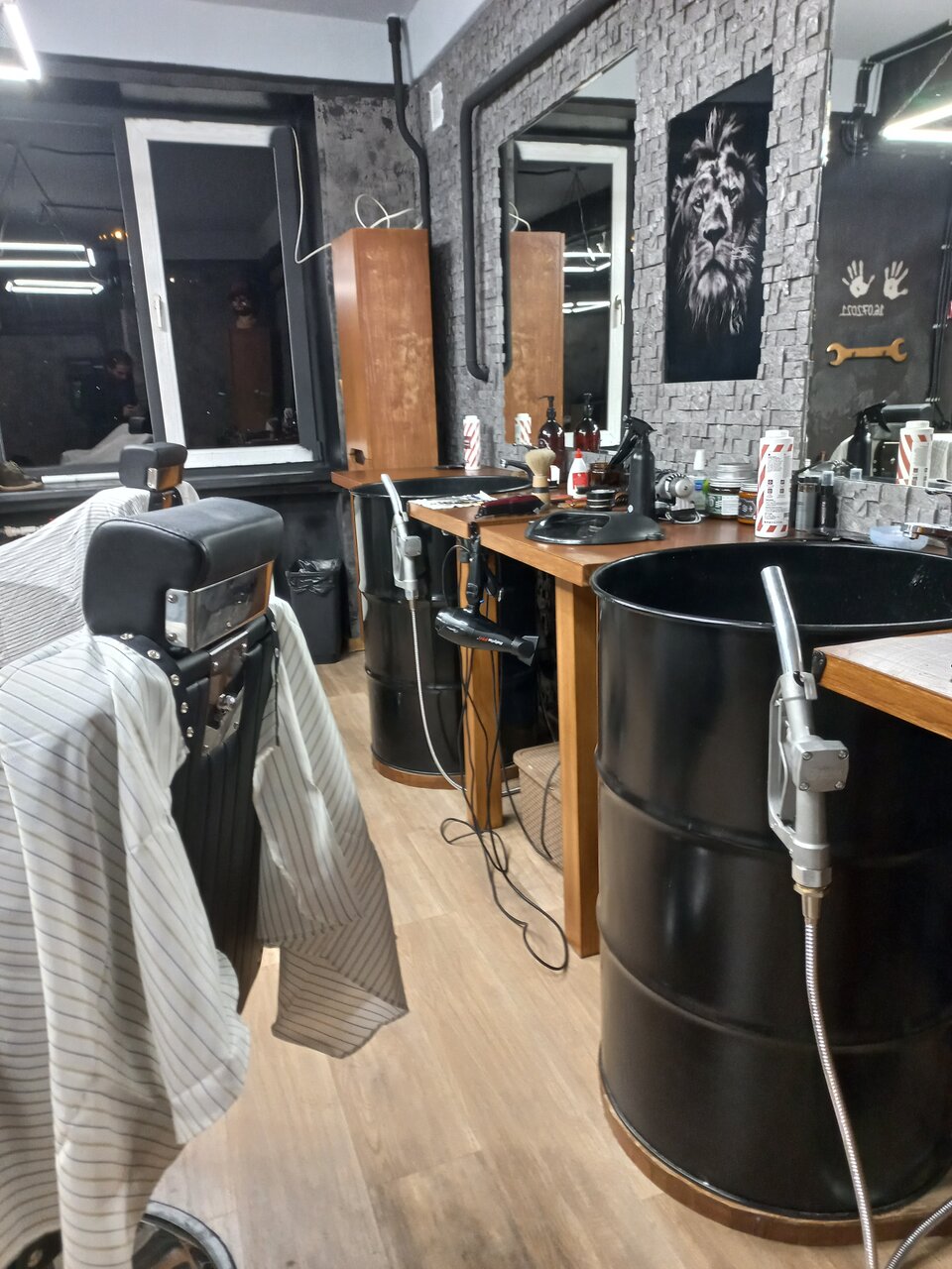 Приятные мастера, хорошо стригут. Приятная музыка. Необычные мойки, хотя не уверен что это удобно, но определенно в этом есть какая-то фишка.