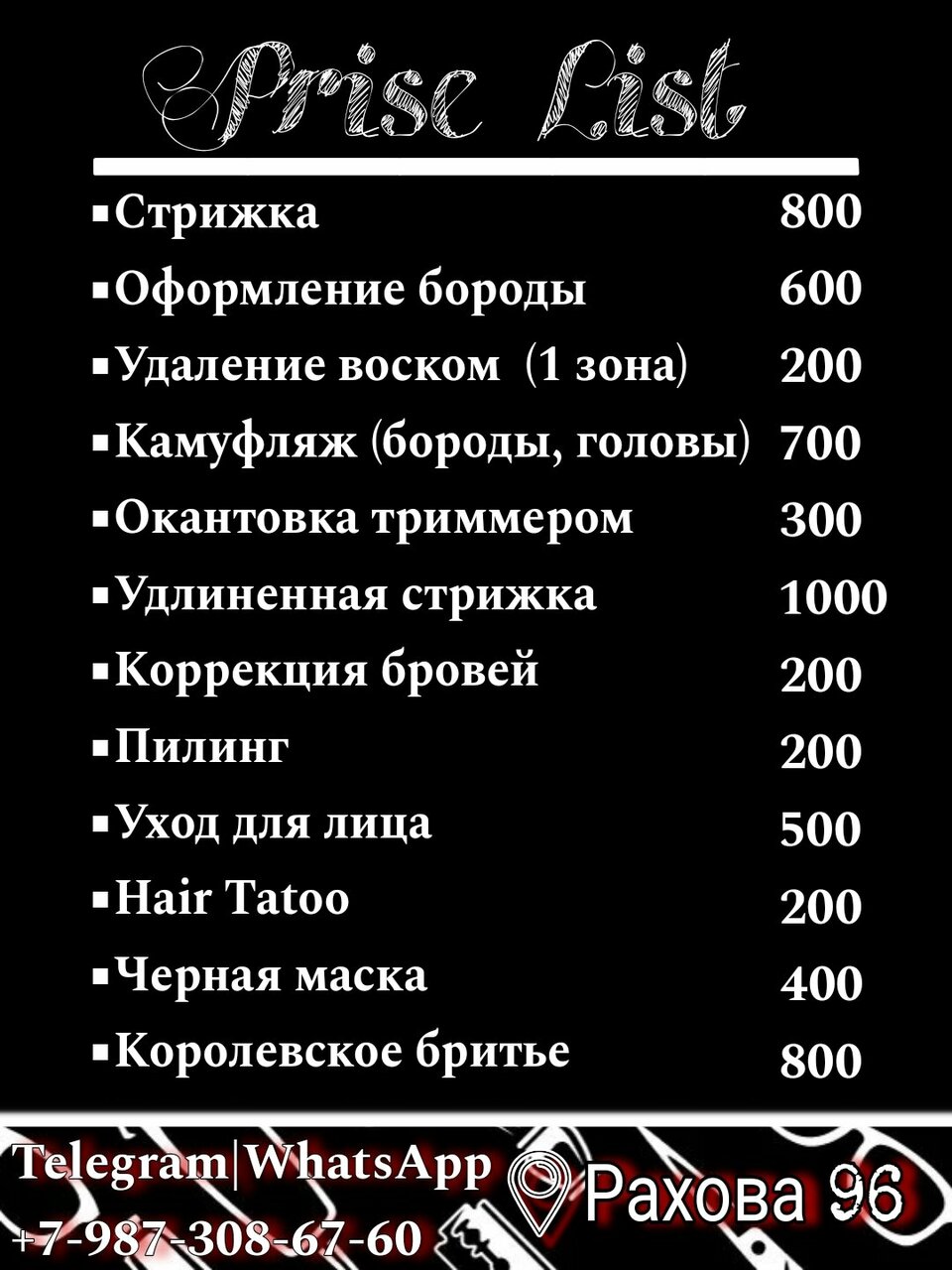 - Адекватные и недорогие цены; Внимание к деталям; Вежливое и внимательное обслуживание; Профессиональная работа с бородой; Искусное выполнение окантовки