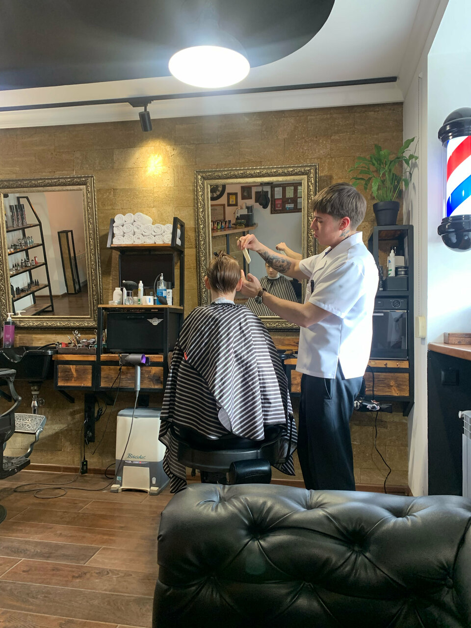 Очень атмосферное место и красивый barbershop мастера настоящие профессионалы своего дела! Администратор очень приветливый Уже не первый раз к вам приходим) Спасибо большое ♥️♥️♥️