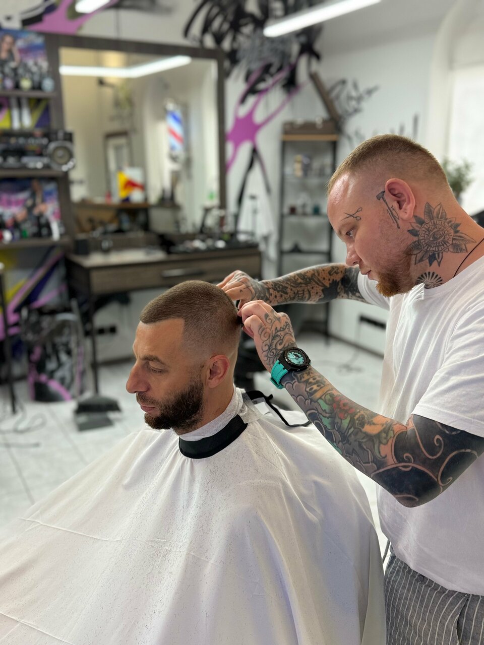 Атмосфера и мастер(Егор), огонь. После стрижки стал похож на человека)))