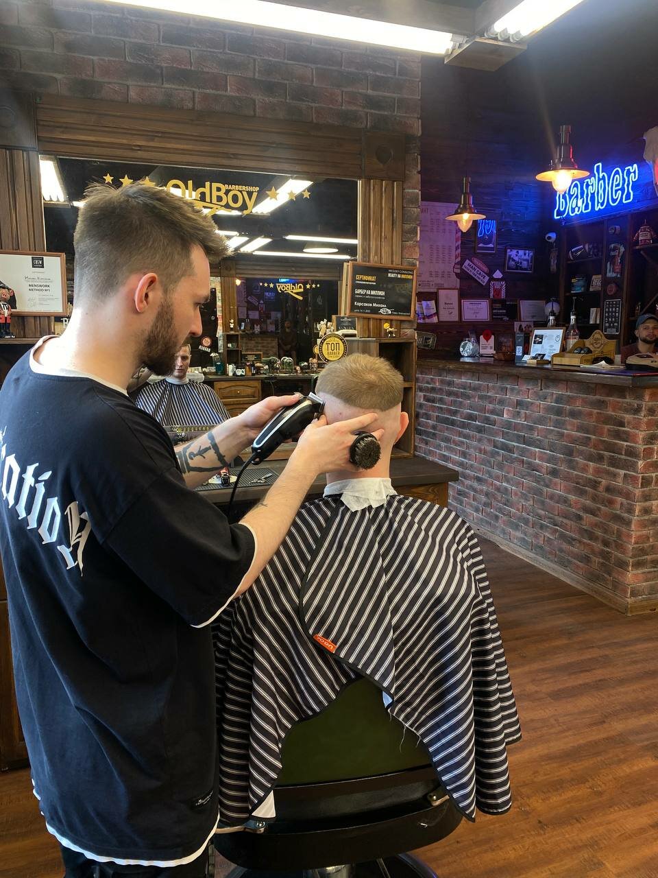 Салон открыл для себя недавно, но остался очень доволен и рекомендую всем знакомым. Удобное расположение, антураж и конечно высокий профессионализм мастера Михаила, все это заставляет меня снова и снова записываться в OldBoy. Михаил стал для меня настоящим открытием. Он не только быстро и качественно выполняет свою работу, но и стал для меня настоящим гидом по стилю. Подобрал прическу (что раньше было весьма проблематичным), придает бороде именно ту форму, о которой я всегда мечтал и помогает советами по уходу за собой. Мне кажется мало, просто хорошо стричь, нужно чувствовать свою работу и гореть ей. Именно это я нашел в Михаиле и буду снова к нему записываться. Особое спасибо за приятную и дружескую беседу. В целом все ребята в салоне дружелюбно настроены и располагают. Пошутят, сварят кофе, скажут что ты красивый в общем и целом место огонь. Спасибо большое за ваш труд.
