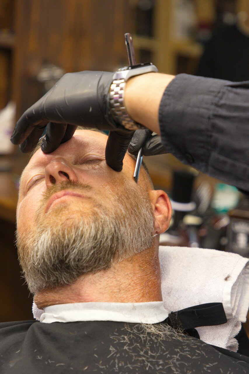 В данный комплекс входят такие услуги как подбор стиля, стрижка головы, оформление бороды машинкой и/или ножницами, распаривание горячим полотенцем, формирование контуров опасной бритвой со съемным одноразовым лезвием или электрической бритвой (по же