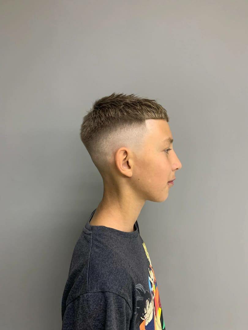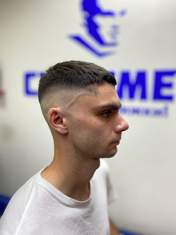 Молодежная стрижка. В стоимость включено мытье головы. Может быть выполнена как с фейд, так и без.