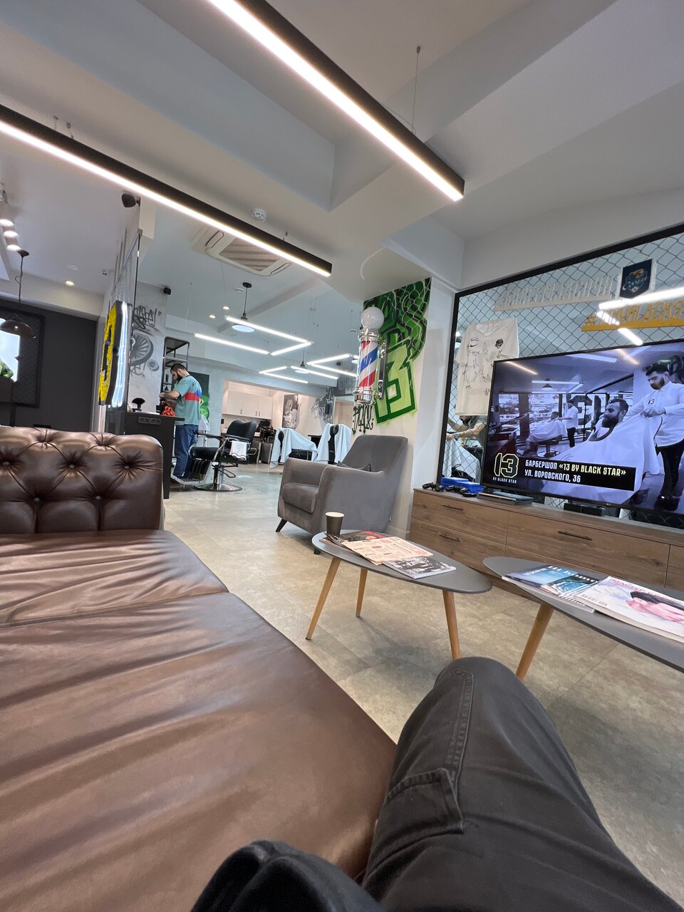 Хороший интерьер присутствуют некоторые развлечения хорошее отношение к клиентам по стрижке все тоже очень хорошо всем советую.