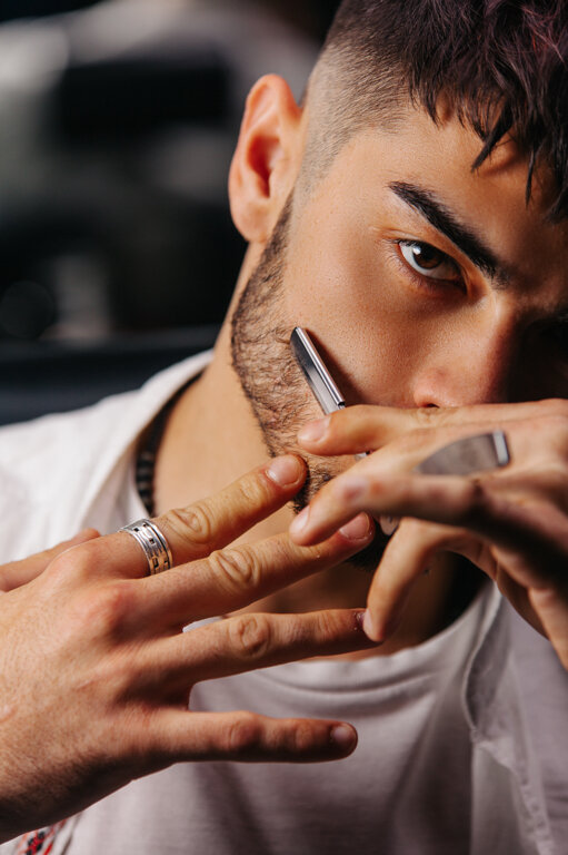 Придание формы бороде, распаривание лица со специальным уходом, создание четких контуров опасной бритвой и укладка премиум средствами.
