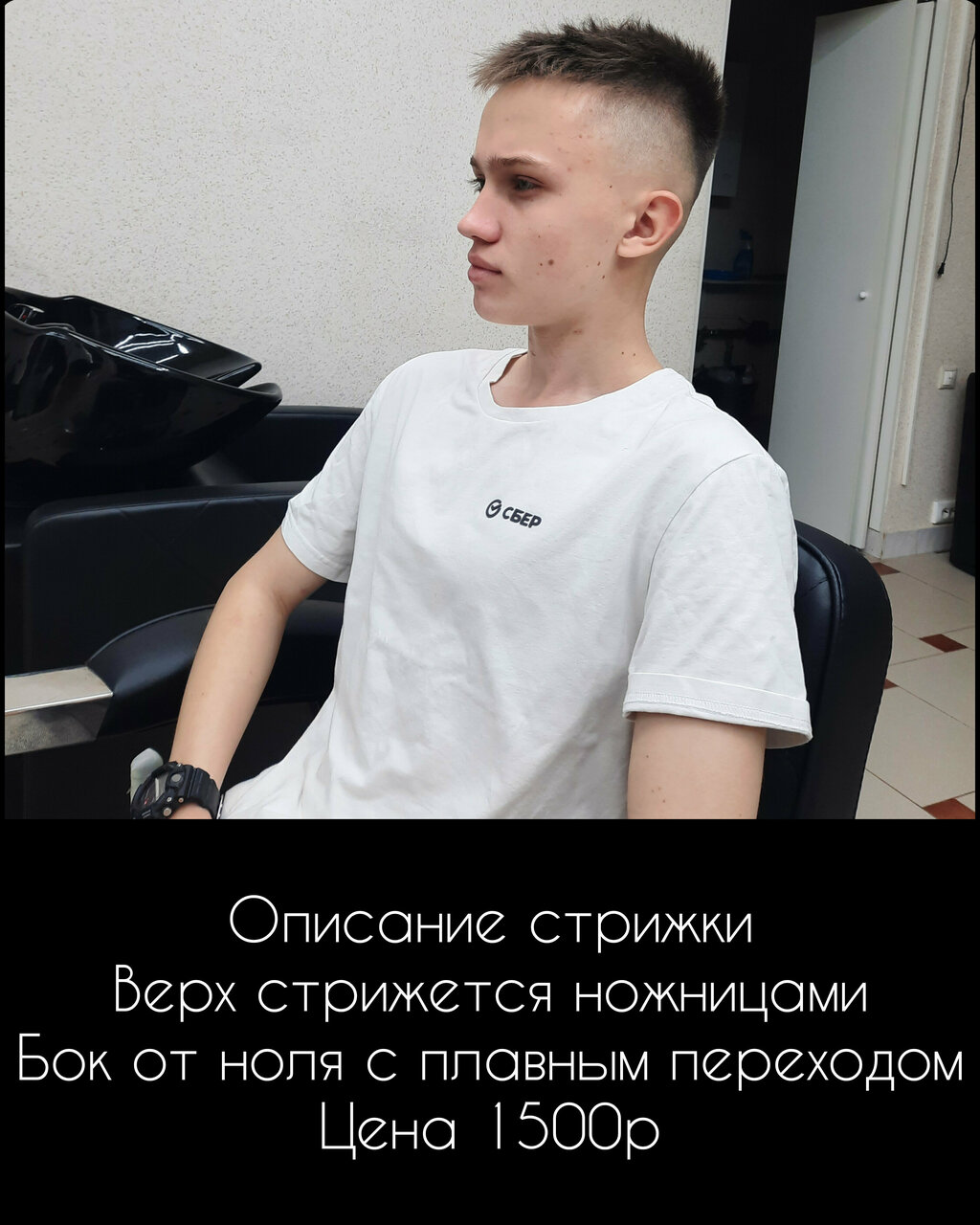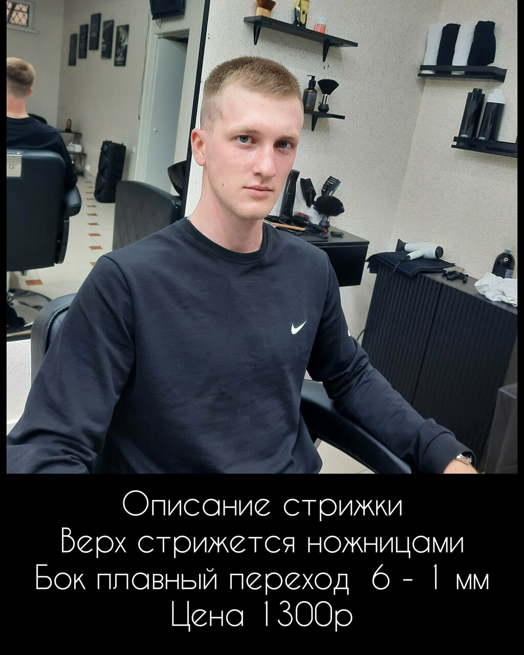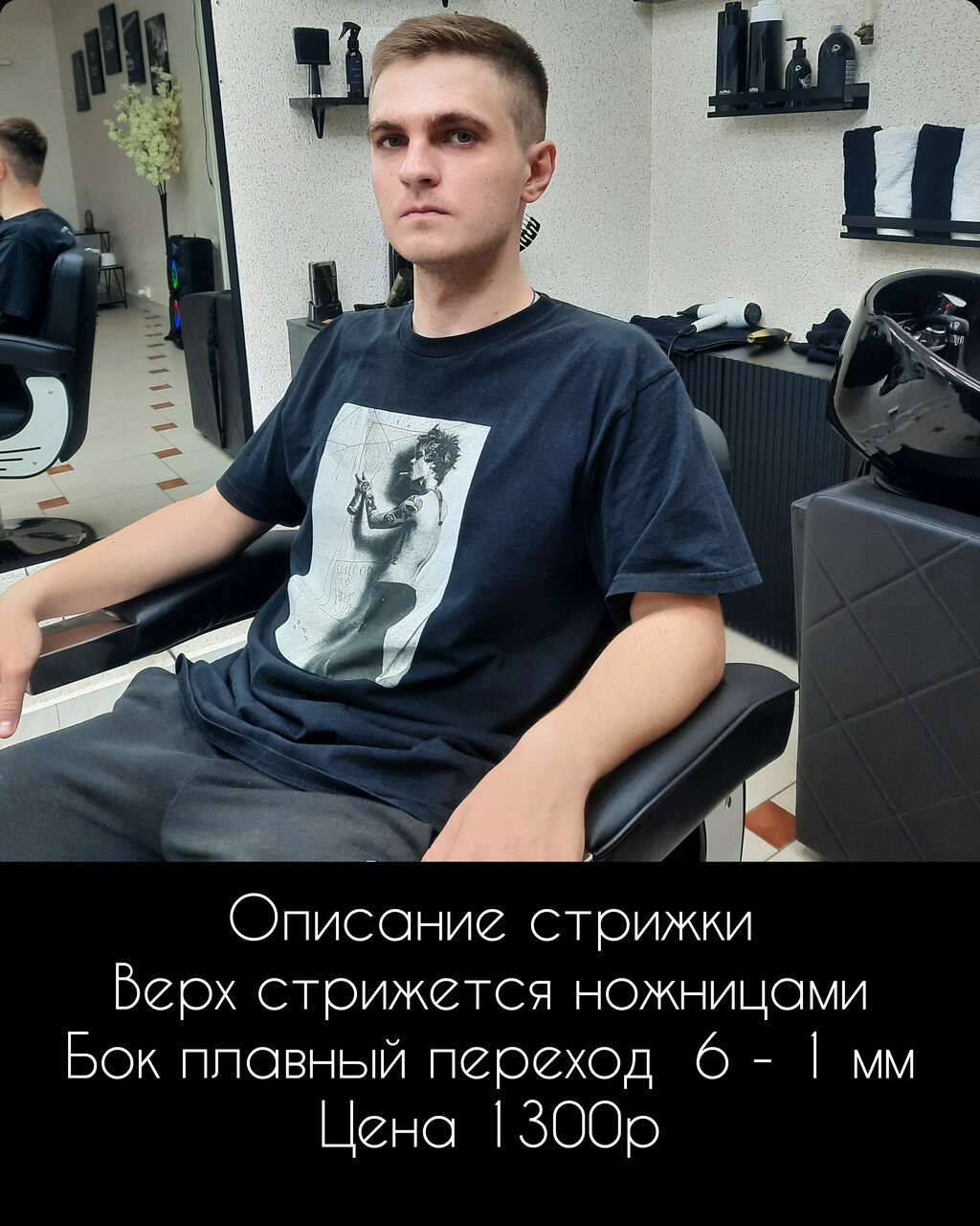 - Стрижка модельная (верх ножницы, бок плавный переход до 1 мм) 1300₽