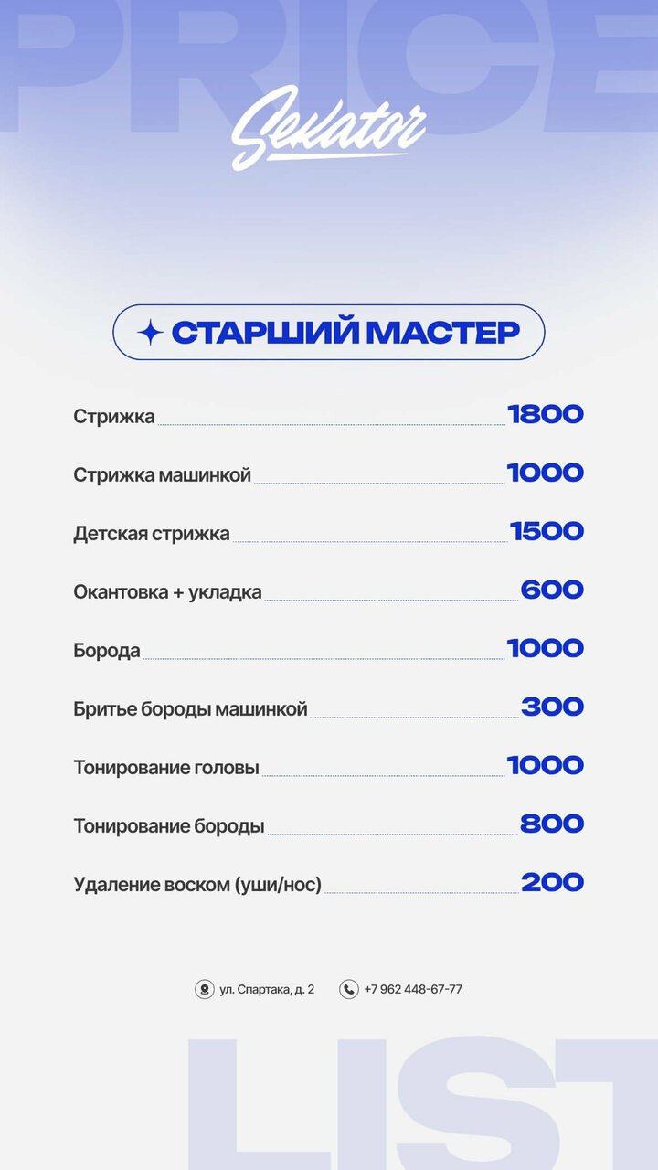 Информация о барбершоп Sekator в Ставрополе актуализирована в ноябре 2025 года: