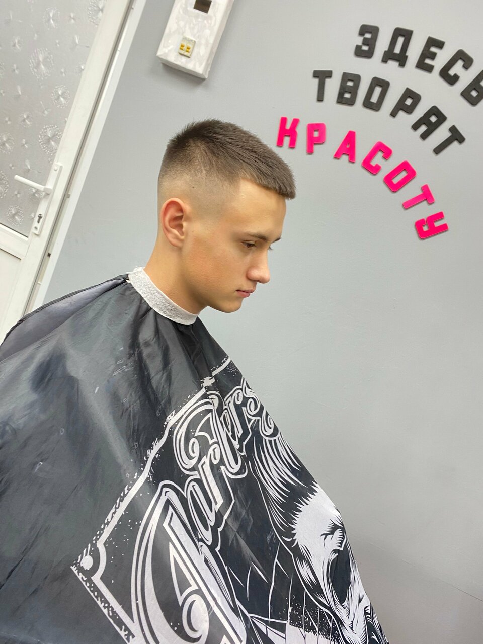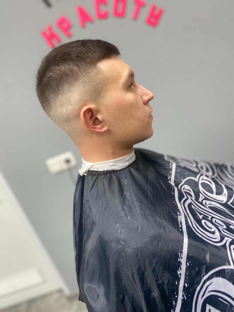 Стрижка выполняется исключительно машинкой с применением одной - двух насадок.Услуга включает в себя мытье головы до и после стрижки, укладку с применением профессиональных стайлинговых средств.Стрижка по технологии Fade не относится к данной услуг
