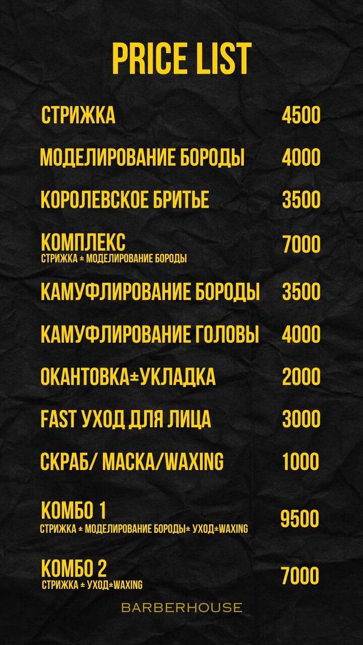 Скачать прайс-лист Barber house на ноябрь 2025 года