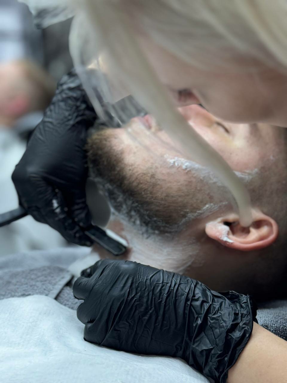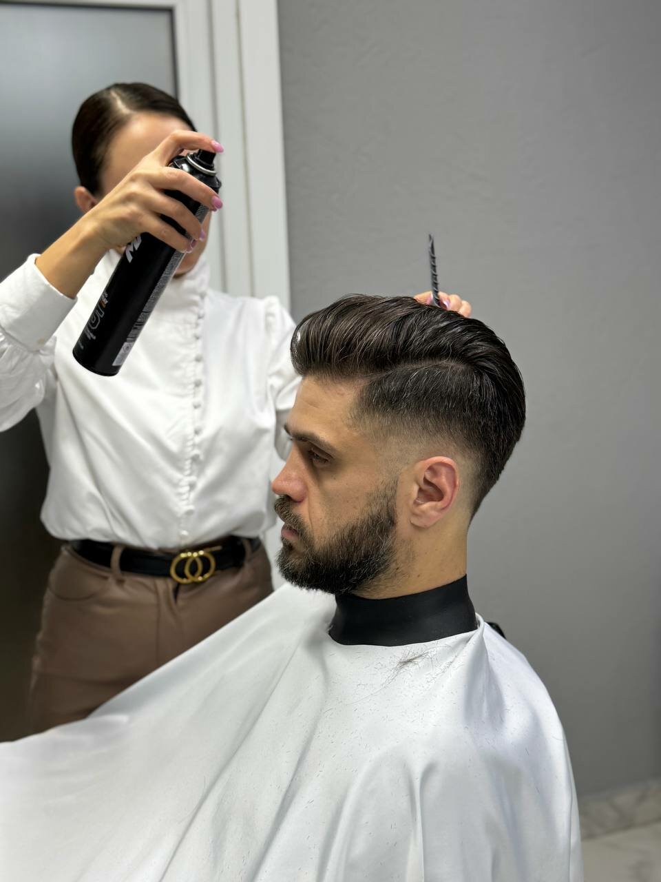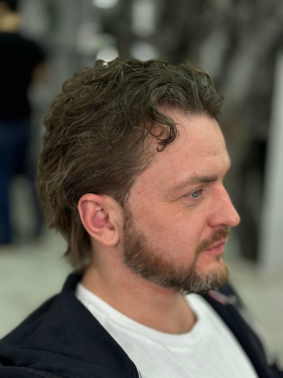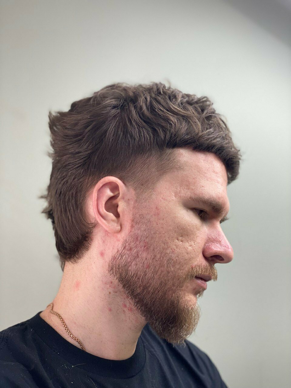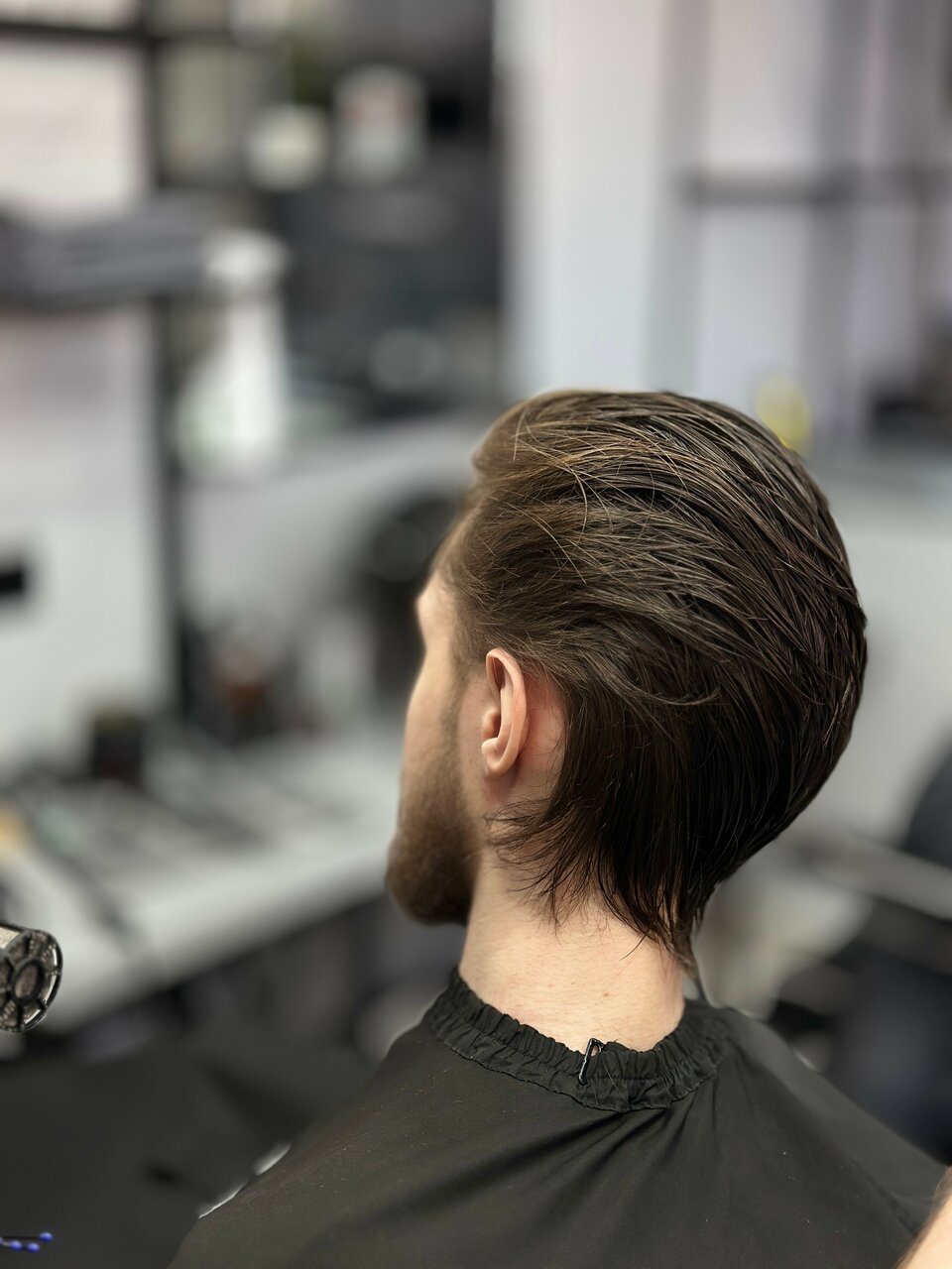 Пропустили кусок волос на шее, муж темноволосый. Шею не помыли, оставили в волосах. Не понравилось общение с барбером. Лучше делать качественно и молча.