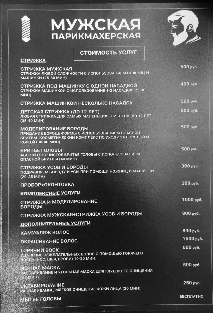 Скачать прайс-лист Мужская парикмахерская на ноябрь 2025 года
