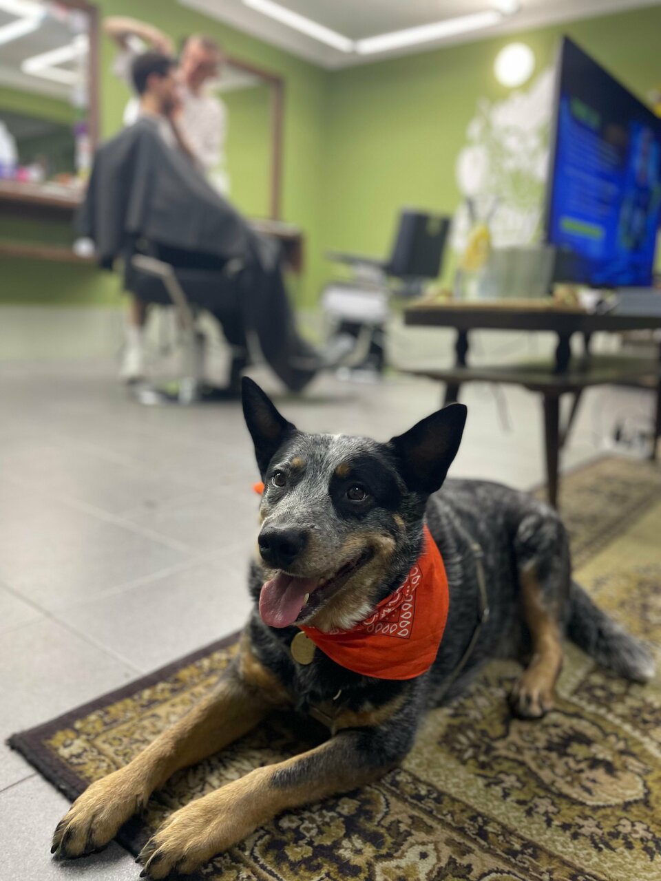 Оч круто подстригли! Стильно и красиво прям как в московских барбершопах И можно с собакой что тоже приятно)
